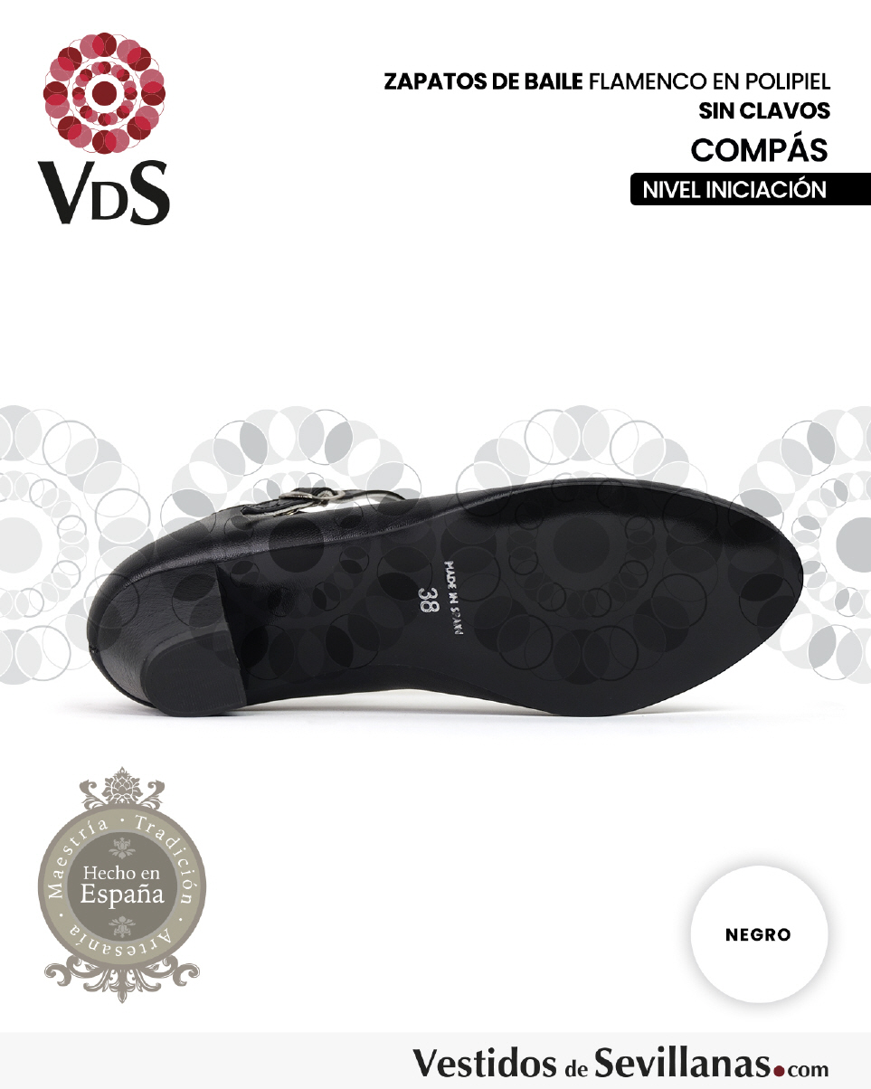 Zapato de flamenca COMPÁS, se abrocha de forma rápida, ajustando con hebilla.