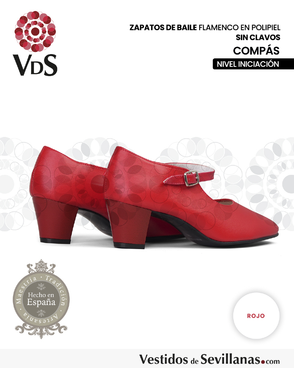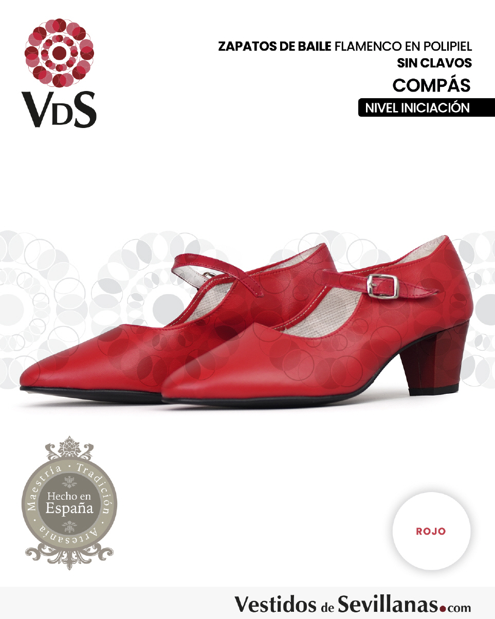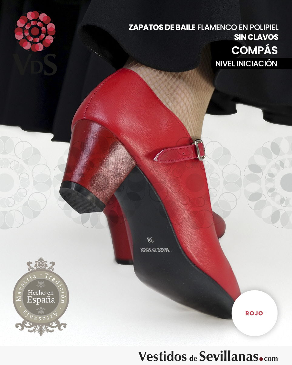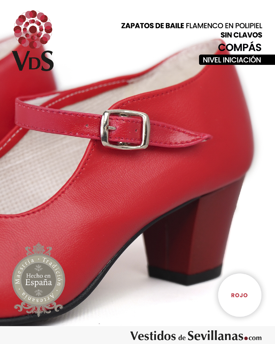Zapato de flamenca COMPÁS, se abrocha de forma rápida, ajustando con hebilla.