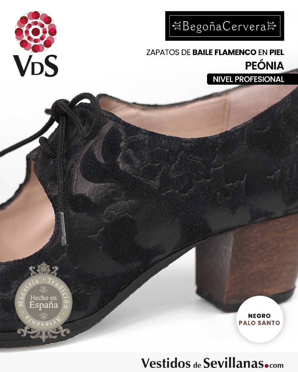 Zapato CORDONERA PEONÍA para baile flamenco de Begoña Cervera, nivel profesional.