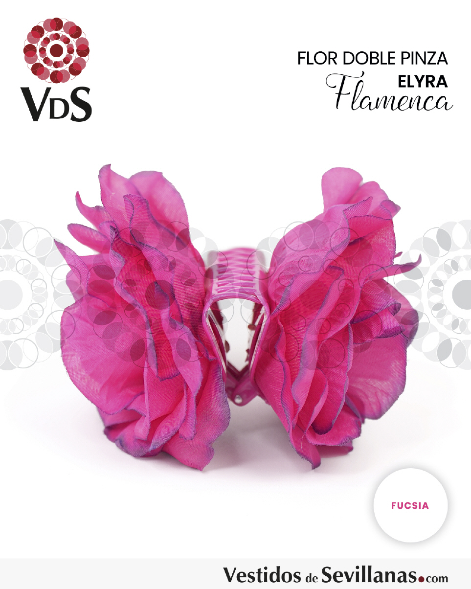 Flor doble ELYRA de tela con pinza para el cabello en acetato, disponible en una amplia gama de colores.