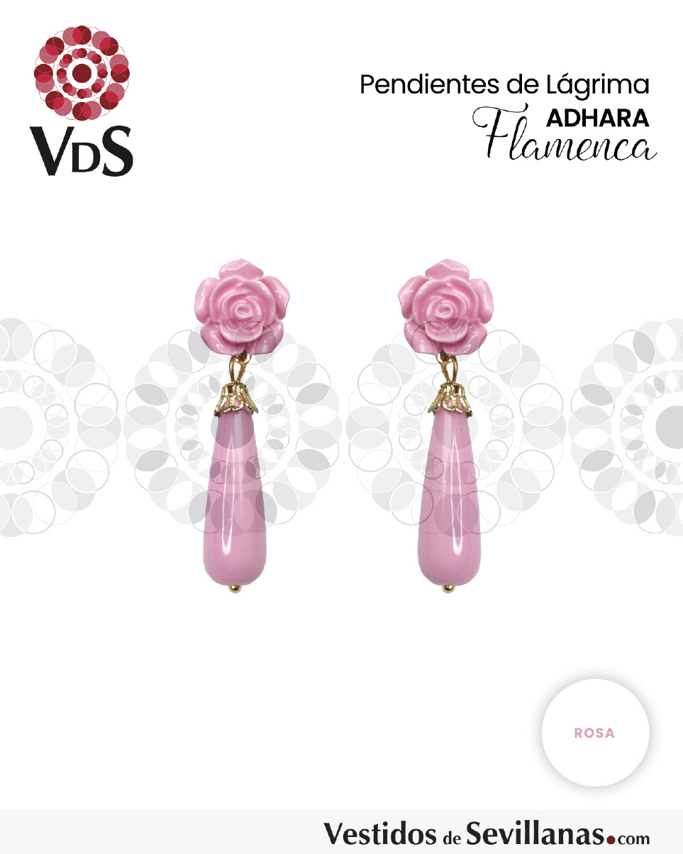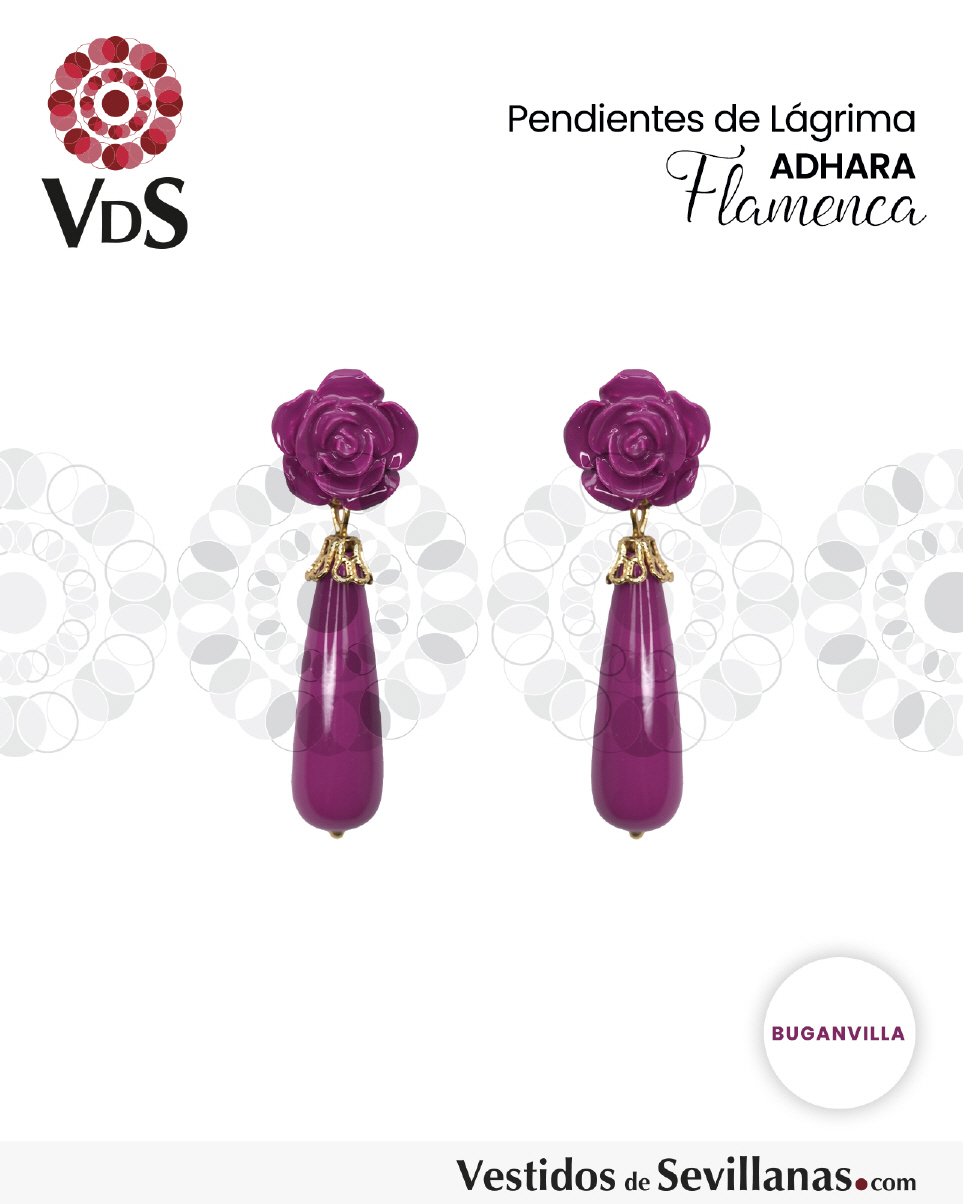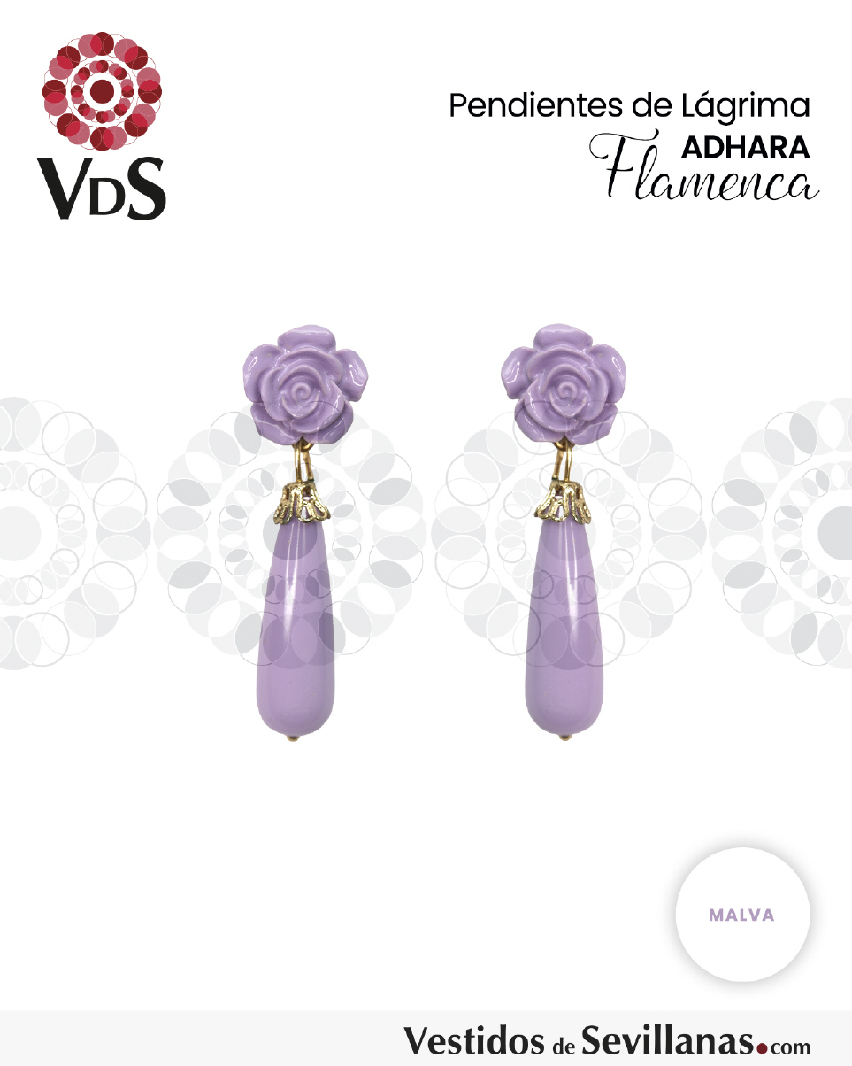 Pendientes de bisutería, flor y lágrima, cierre a presión metálico.