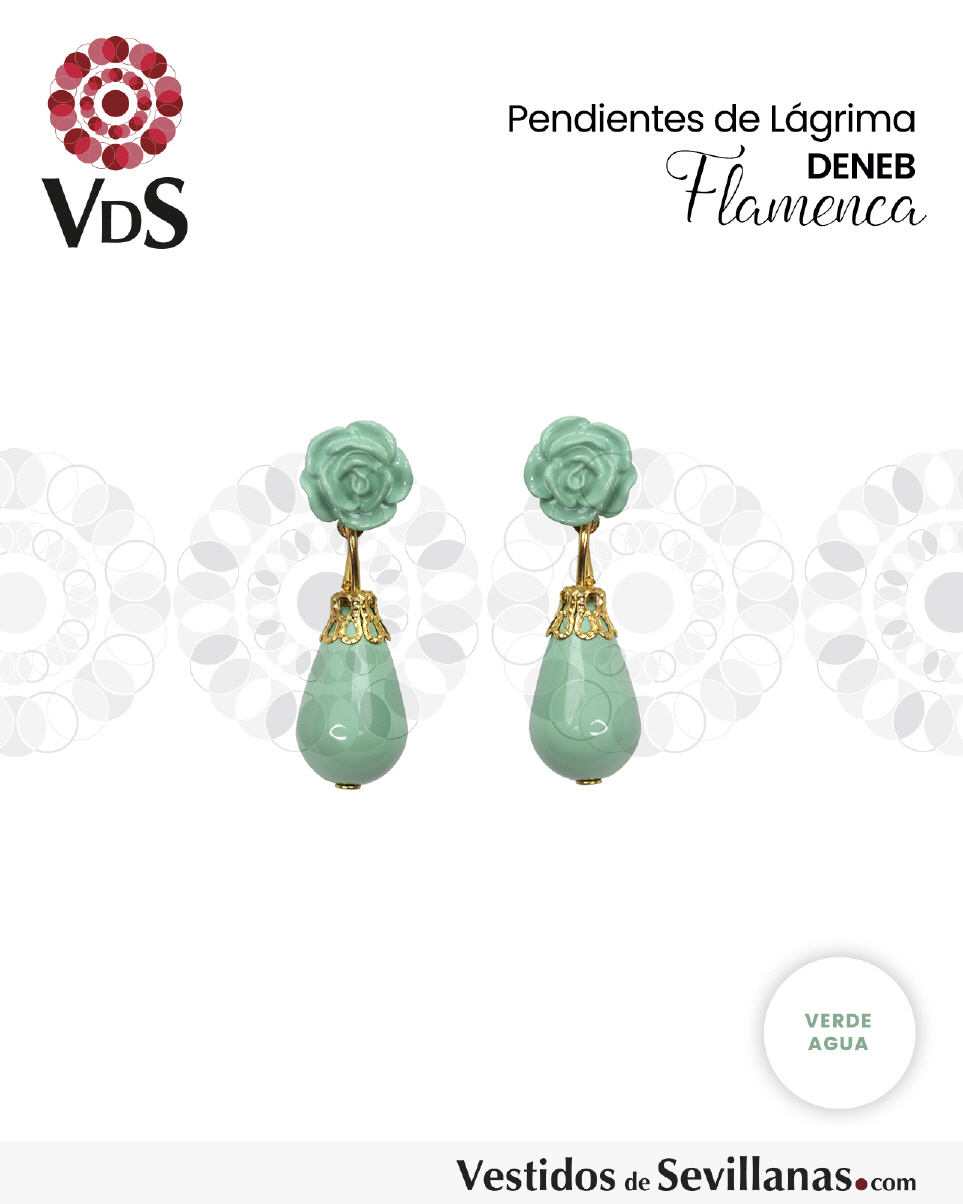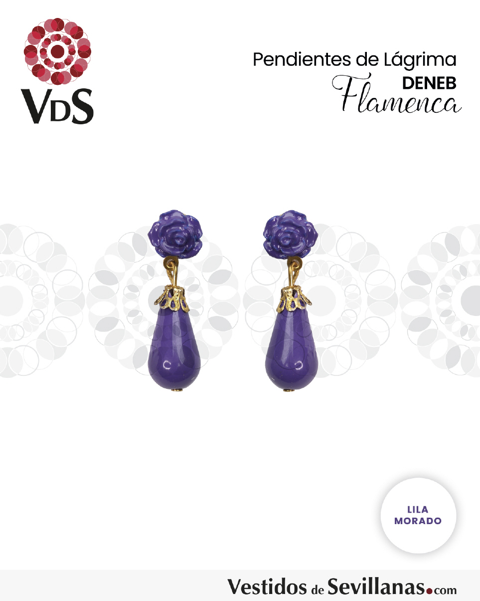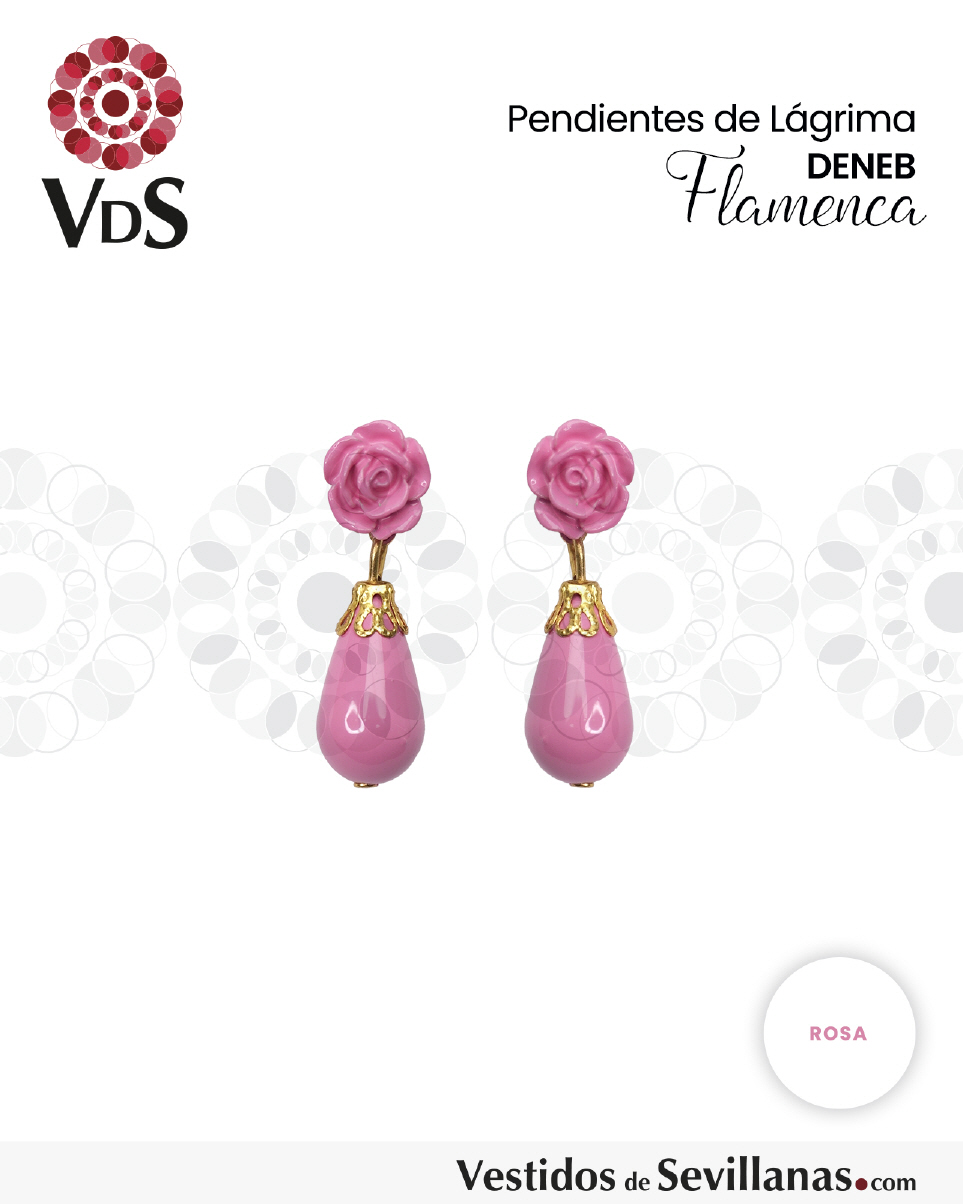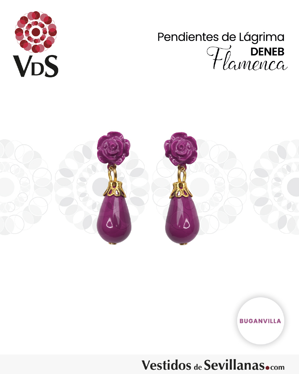 Pendientes de bisutería, flor y lágrima, cierre a presión metálico.