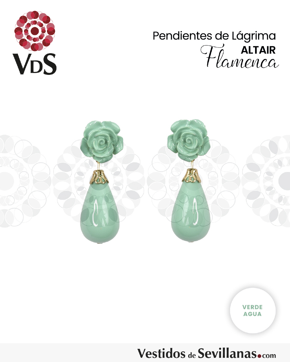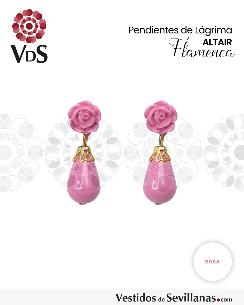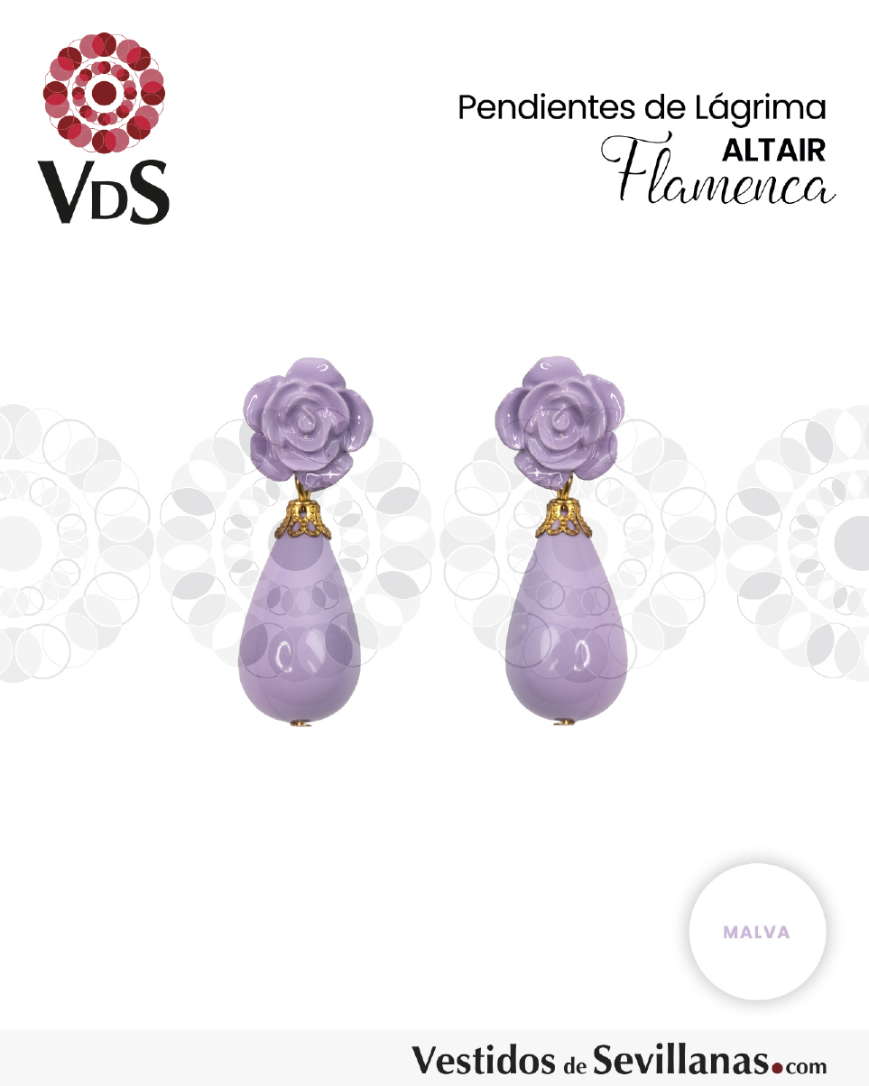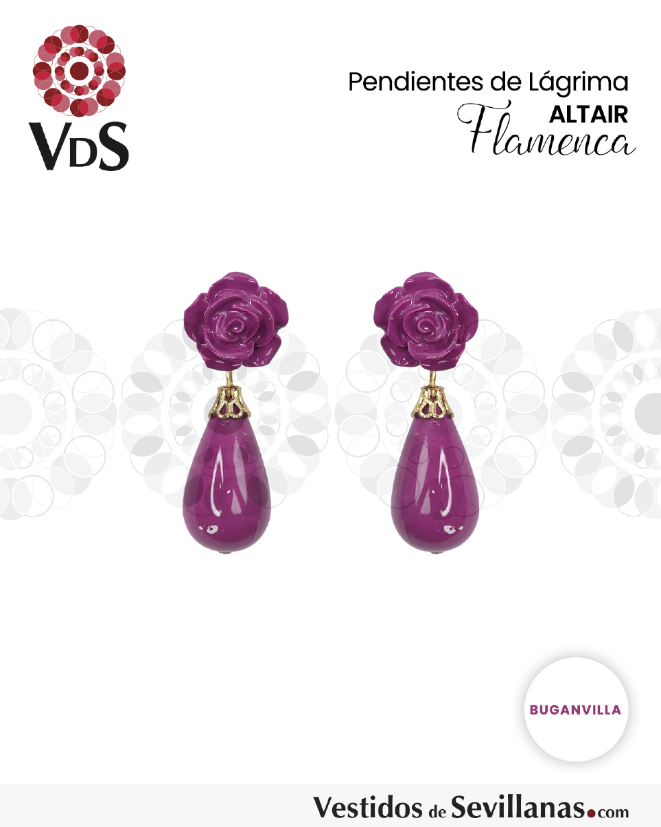 Pendientes de bisutería, flor y lágrima, cierre a presión metálico.