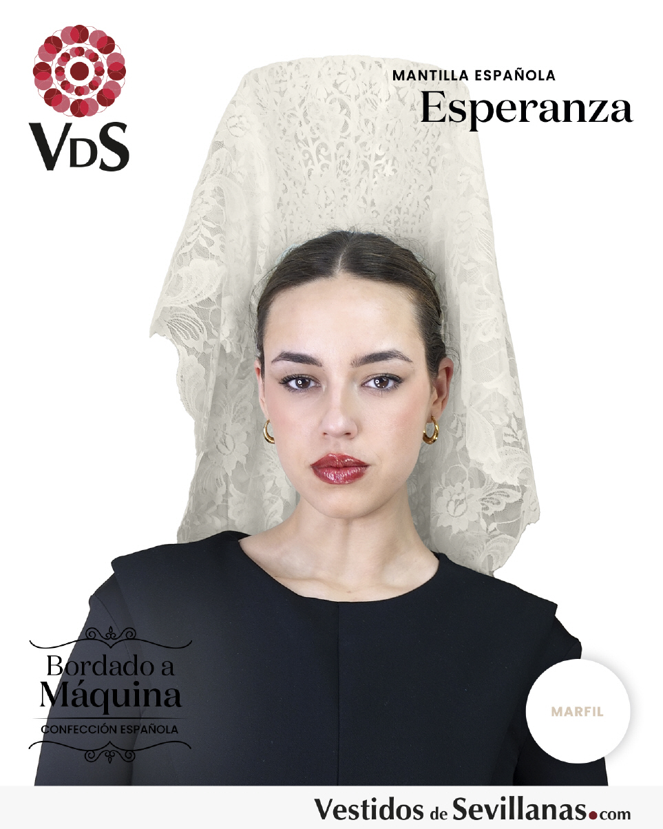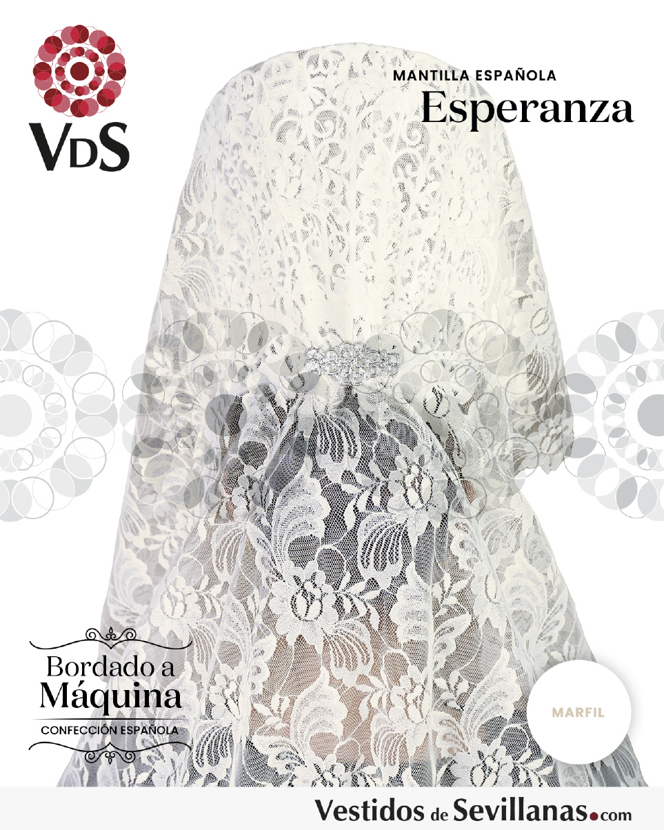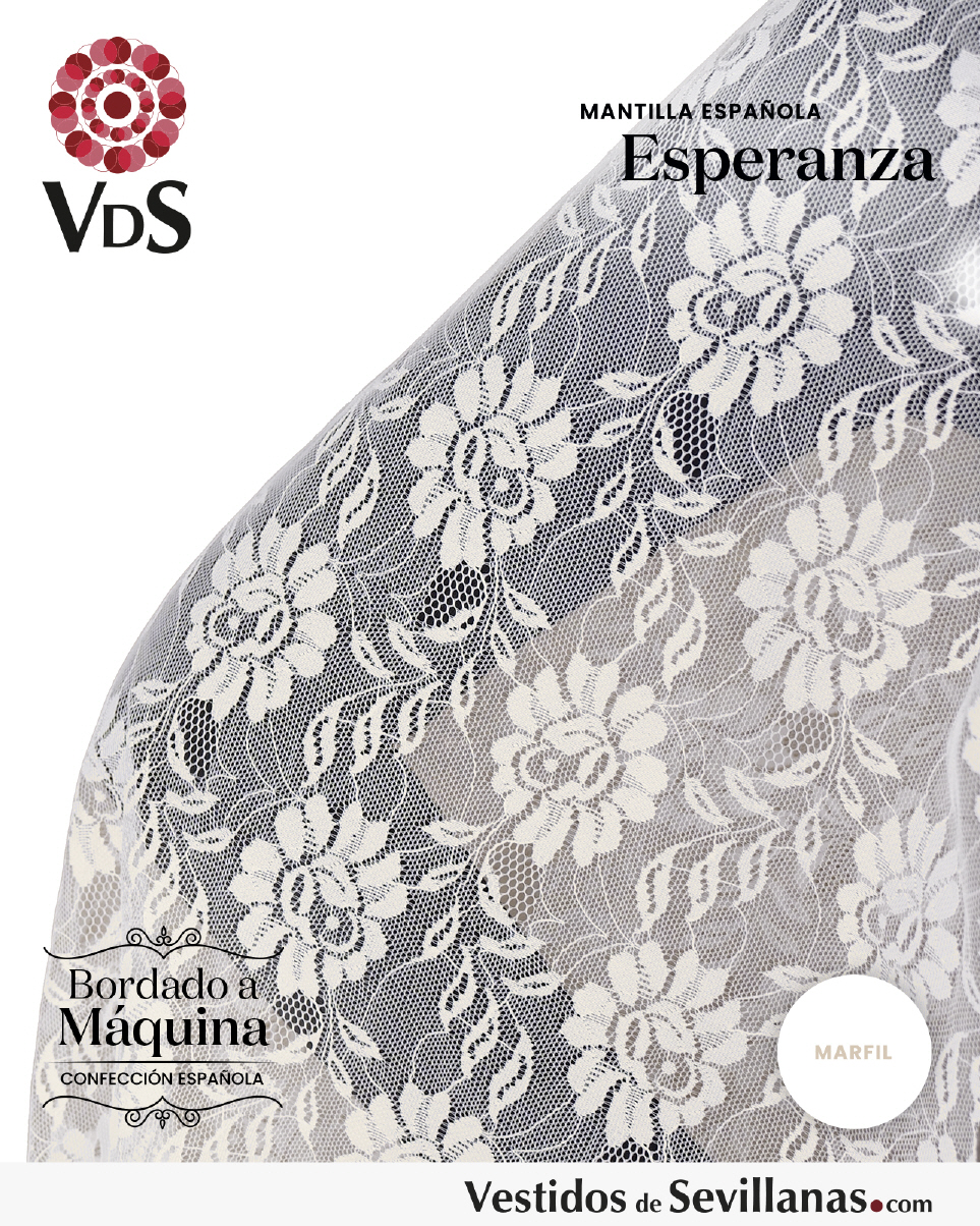 Mantilla Española ESPERANZA tejido poliamida 100%, Bordado a Maáquina.Disponible en una amplia gama de colores.T.XL MEDIDAS: 185 X 65 cms