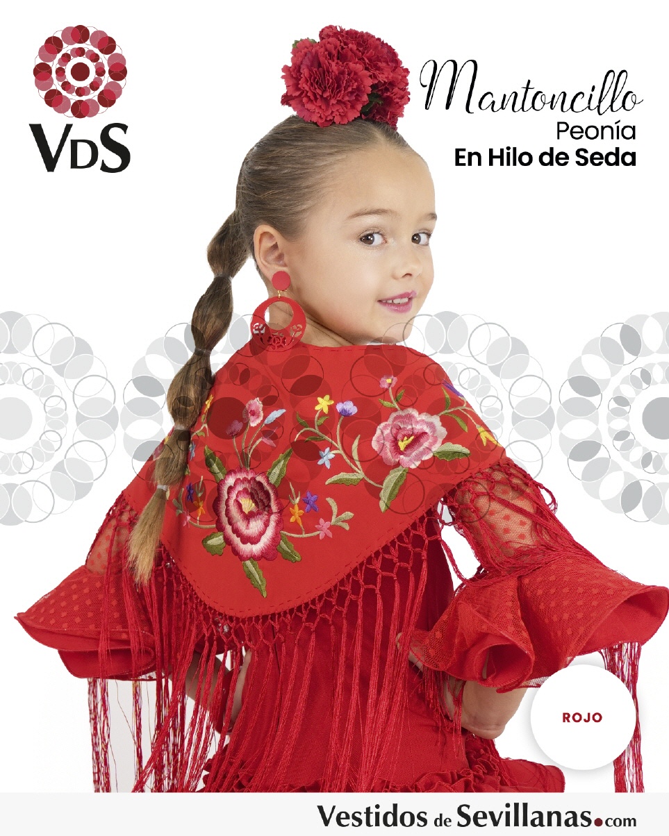 Mantoncillo / Pico PEONÍA bordado con hilo de seda para niña, artesanía andaluza.