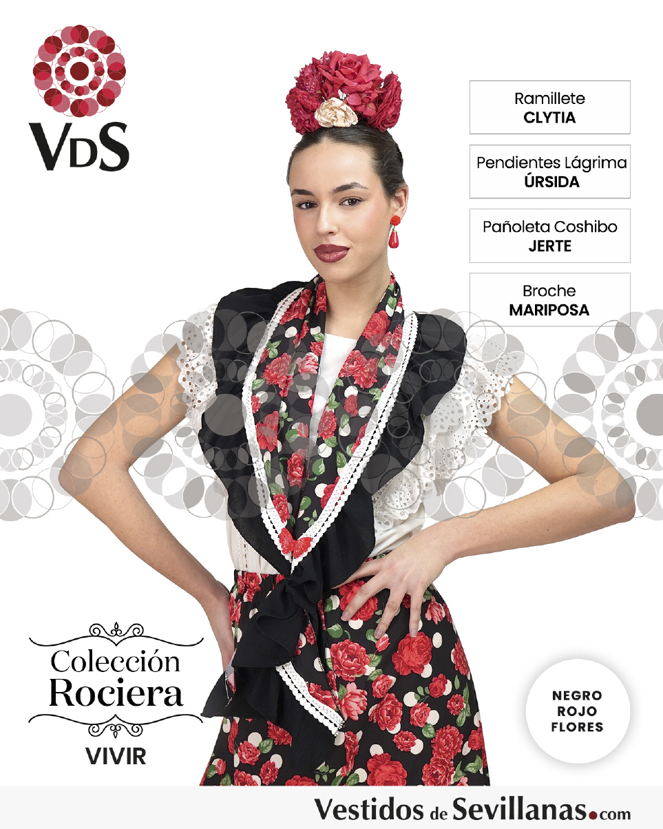 Color Negro/Rojo, Flores y Lunares medianos blancos.