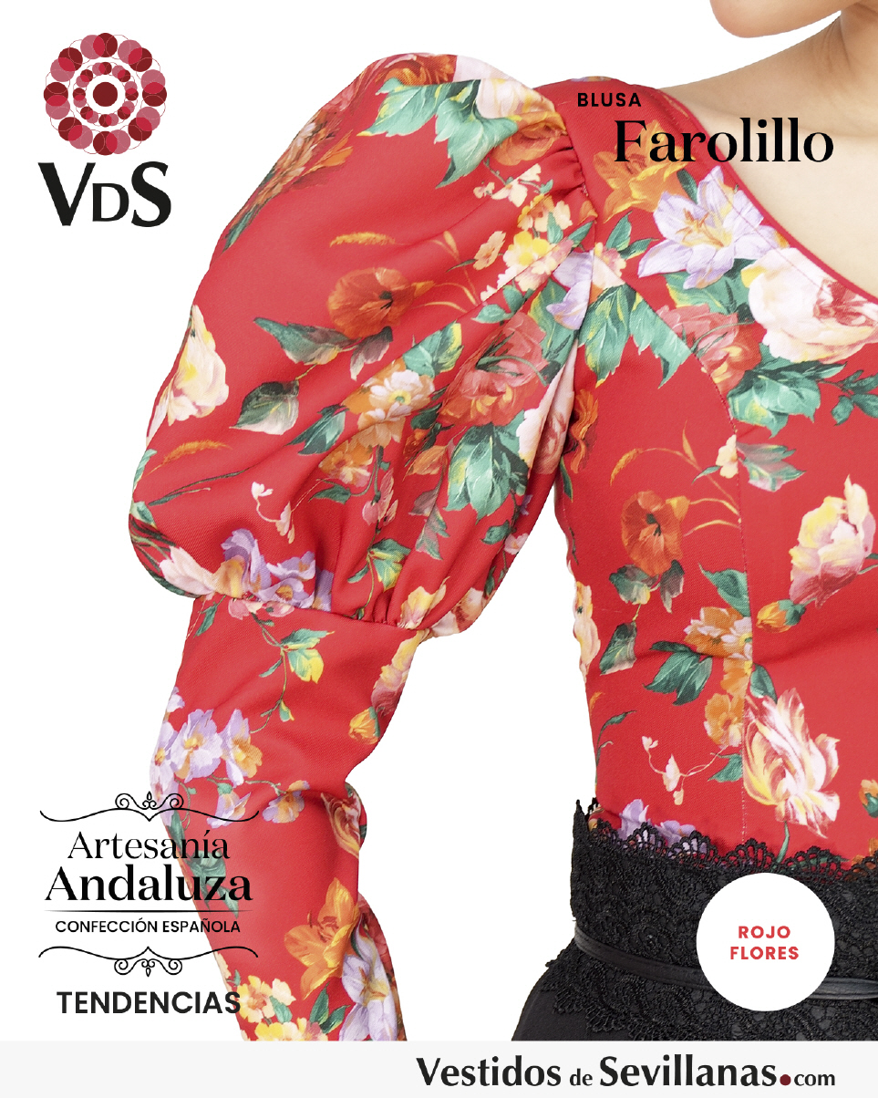 Blusa flamenca FAROLILLO en Strech , estampado flores.