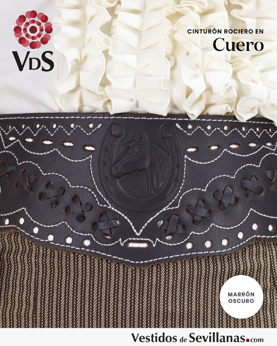 Cinturón Rociero / Campero en CUERO Repujado para mujer, con hebilla ajustable en la parte posterior.