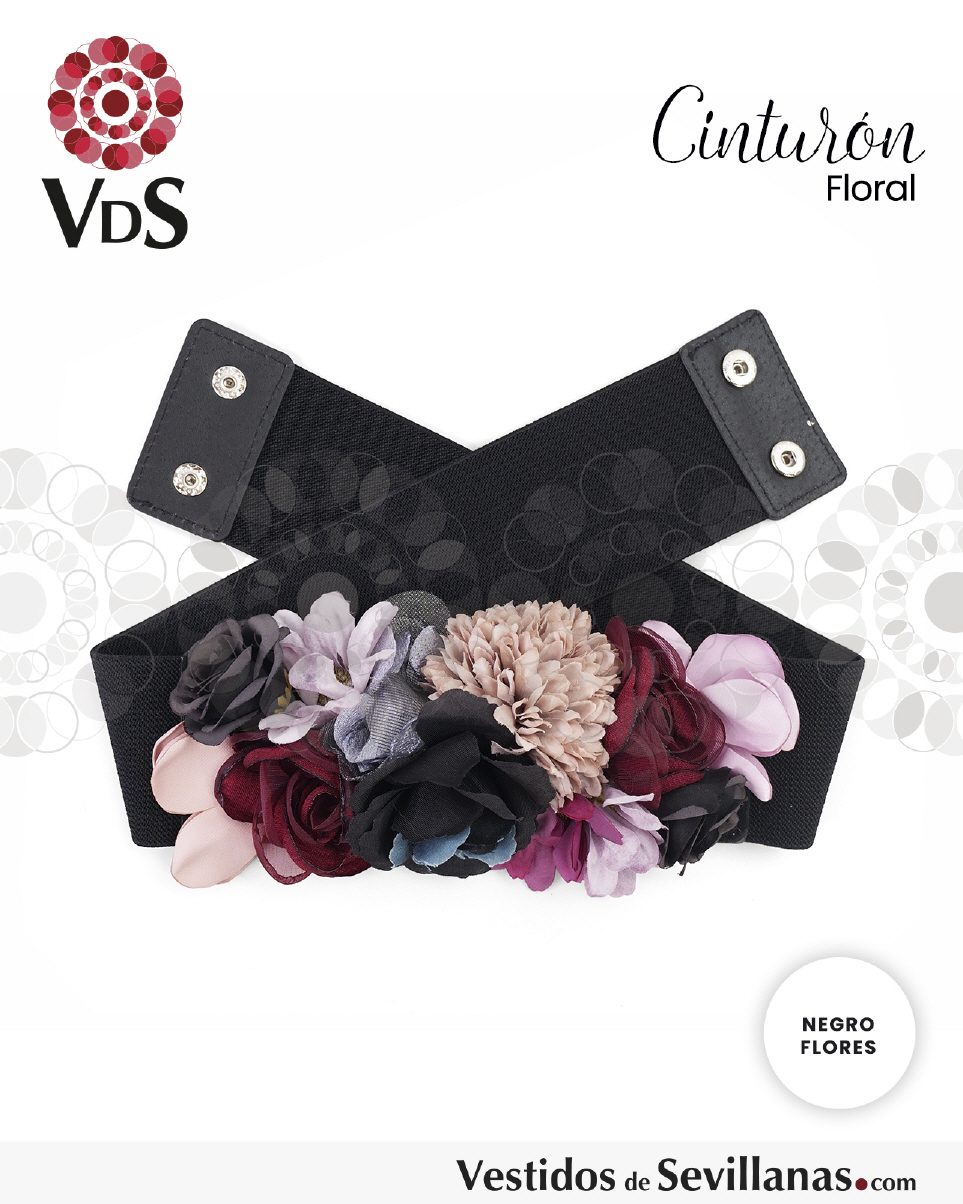Cinturón FLORES elástico para mujer. Goma elástica negro con flores multicolor.Contorno de cintura máximo 100/110 Cms.Nota: Los colores pueden variar ligeramente dependiendo de las características y calibración de su monitor y tarjeta gráfica.