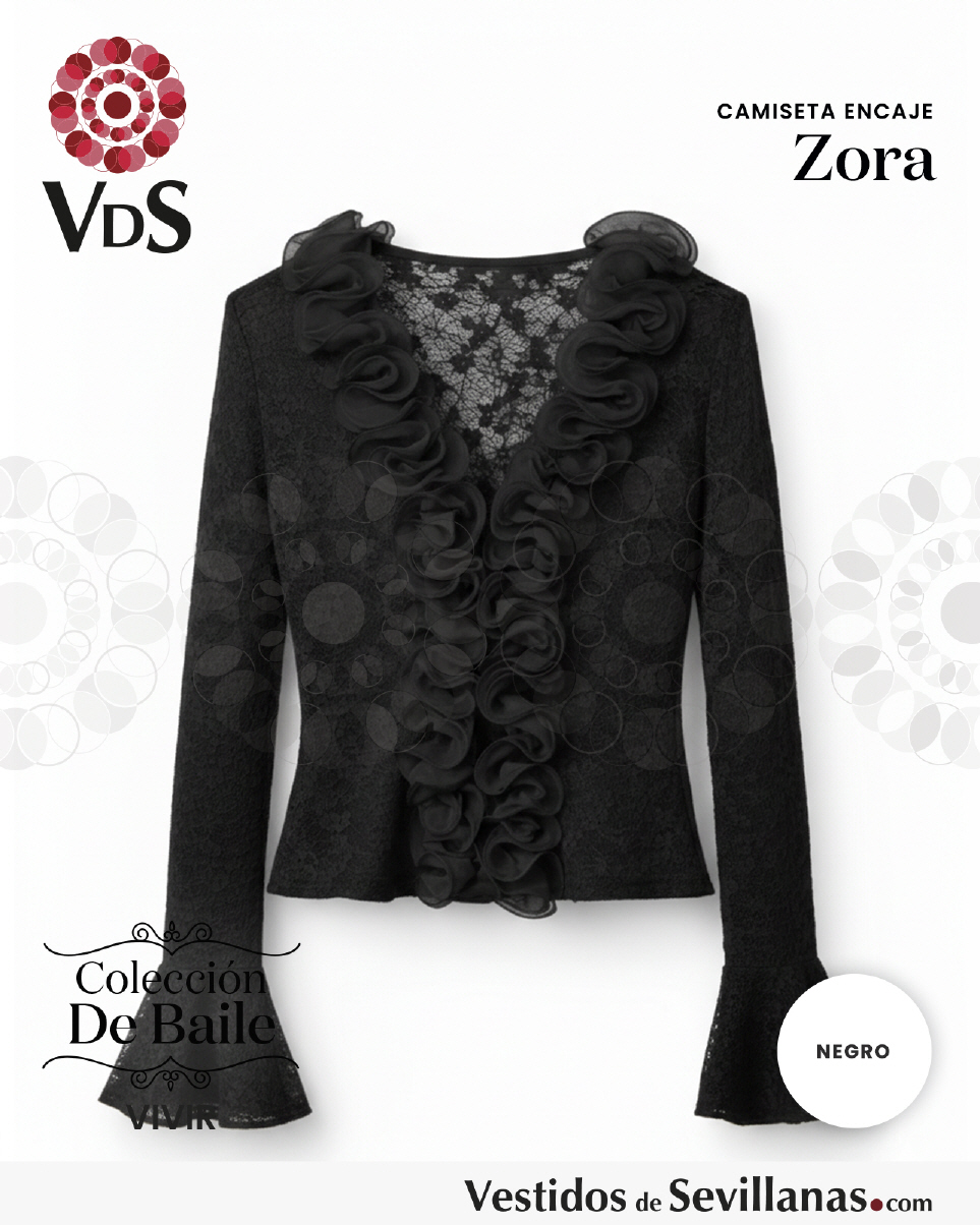 Camiseta ZORA, encaje elástico con dos volantes en el escote y en la manga.
