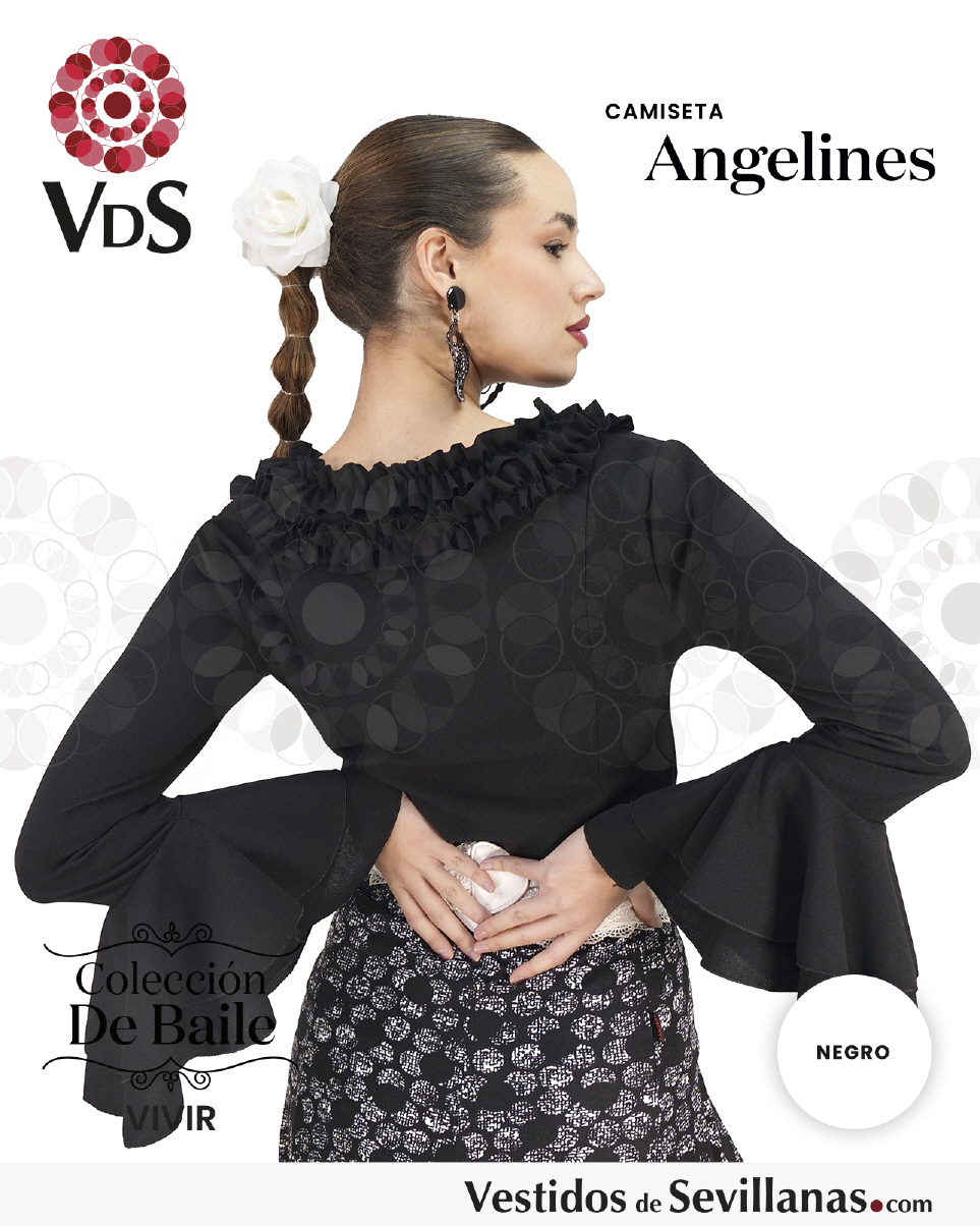 Camiseta ANGELINES Garrucha (Sin botones), tejido elástico y con doble garrucha en el escote y dos volantes en la manga.