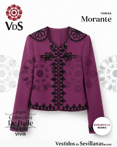 Torera MORANTE, color Buganvilla liso, pasamanería en cordón negro.