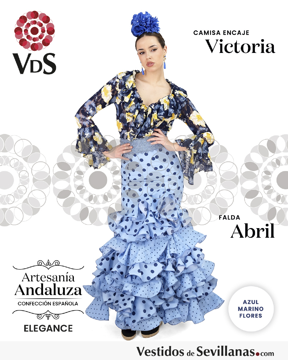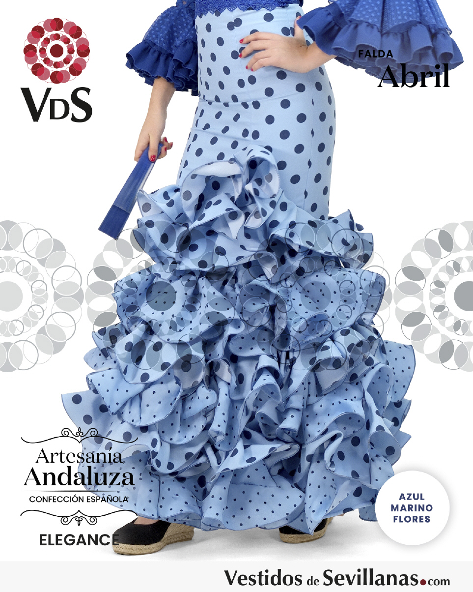 Falda larga flamenca ABRIL, entallada con ocho volantes en cascada.