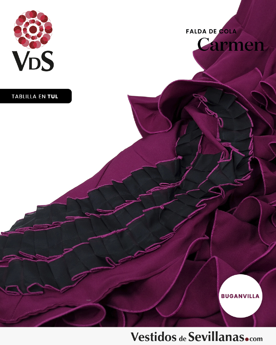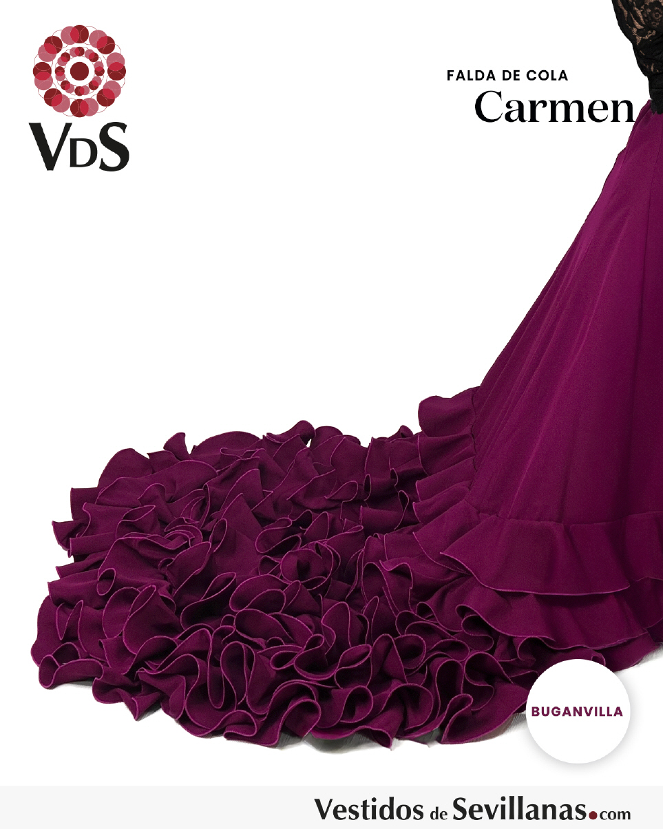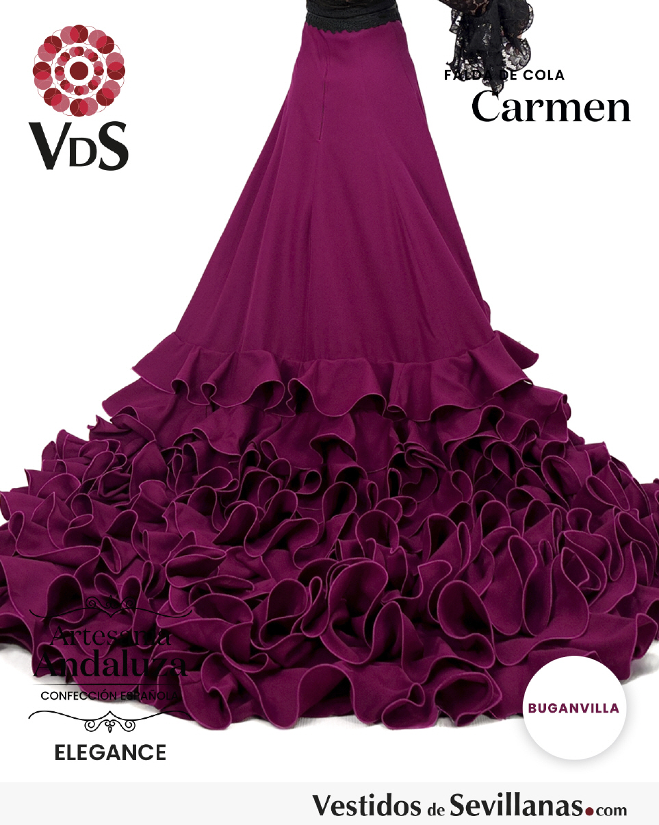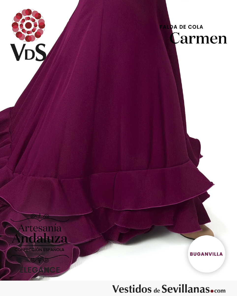 Falda de cola CARMEN para baile flamenco en color buganvilla.