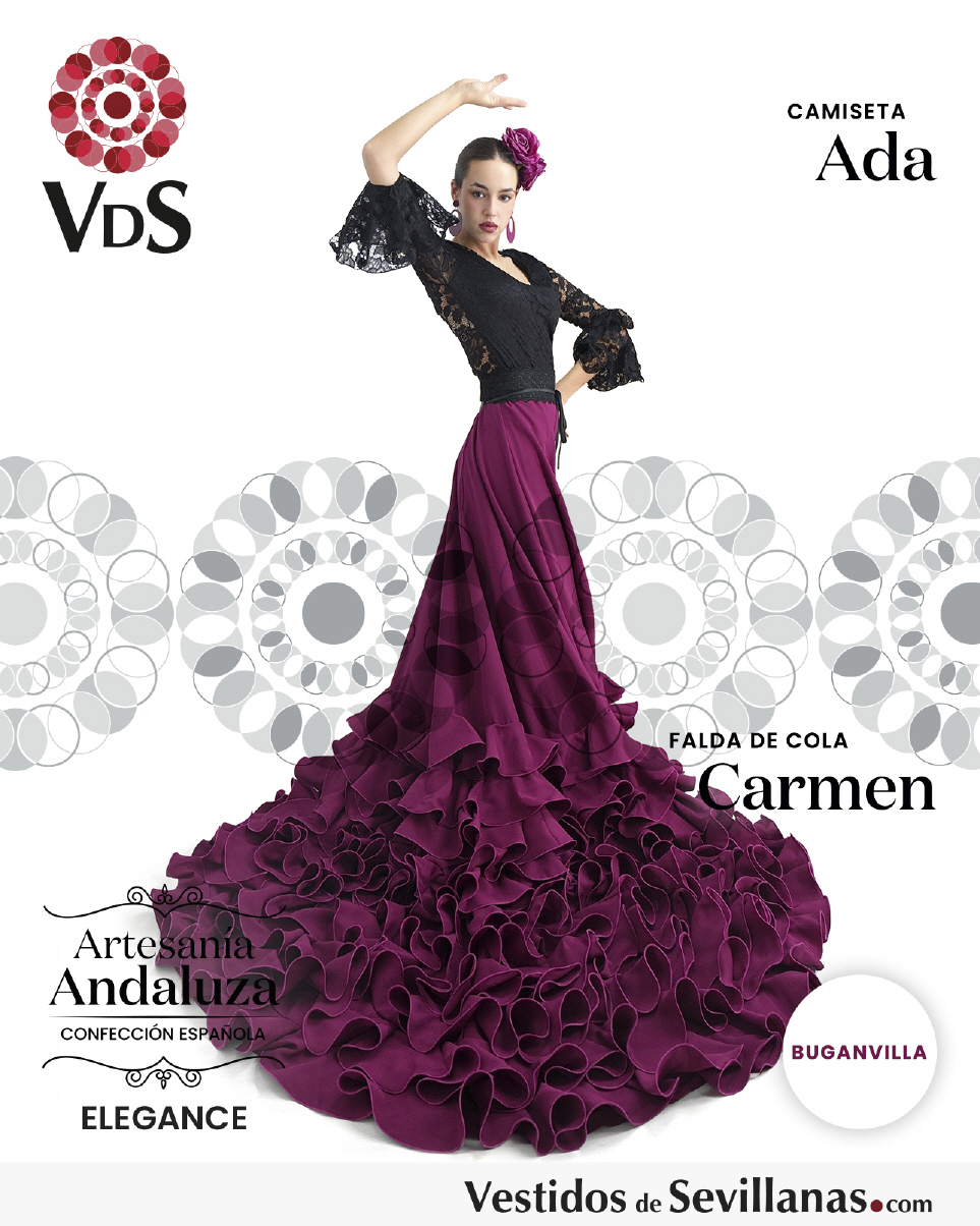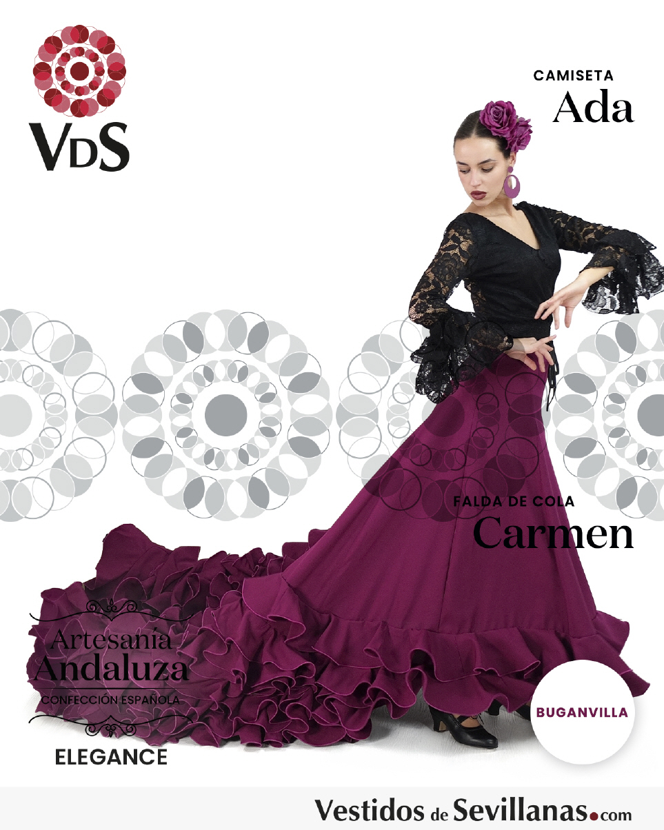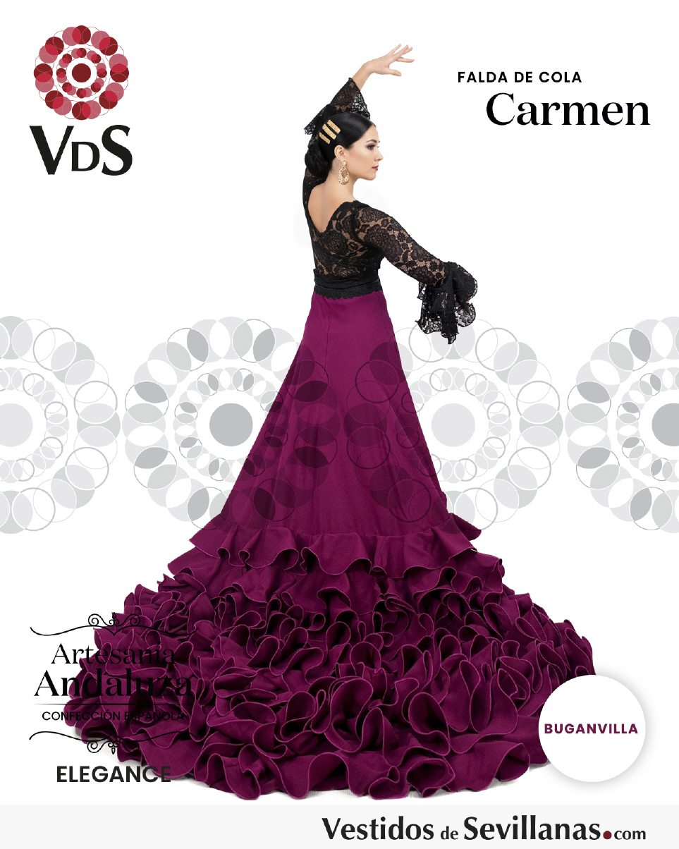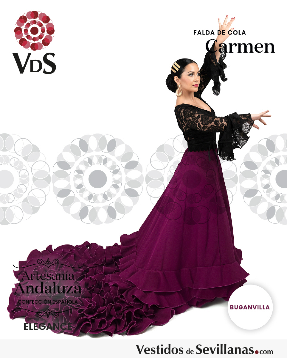 Falda de cola CARMEN para baile flamenco en color buganvilla.
