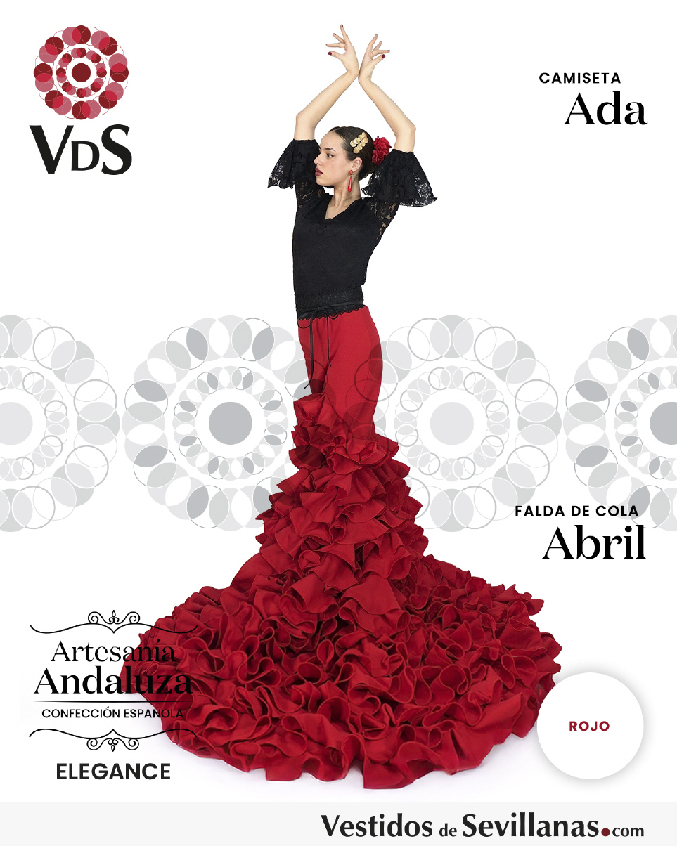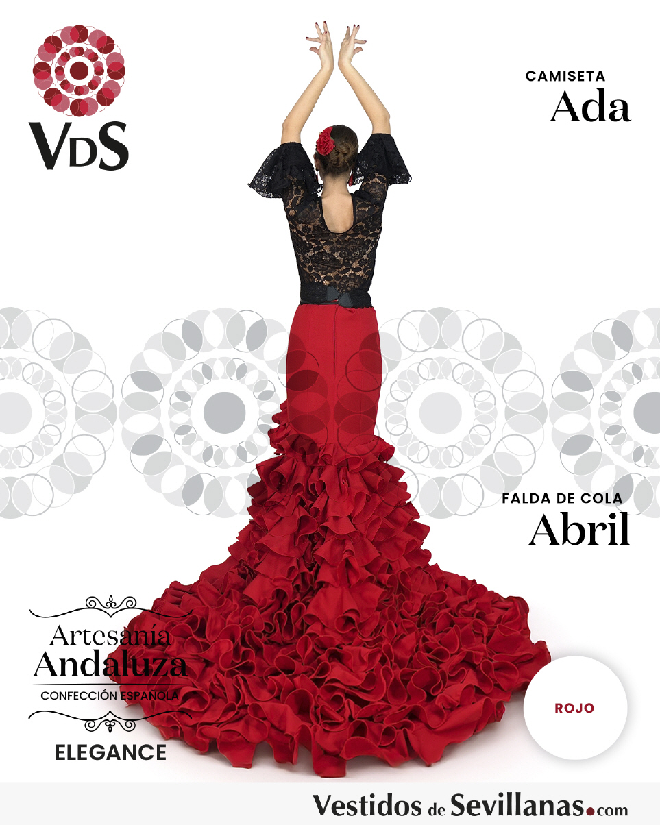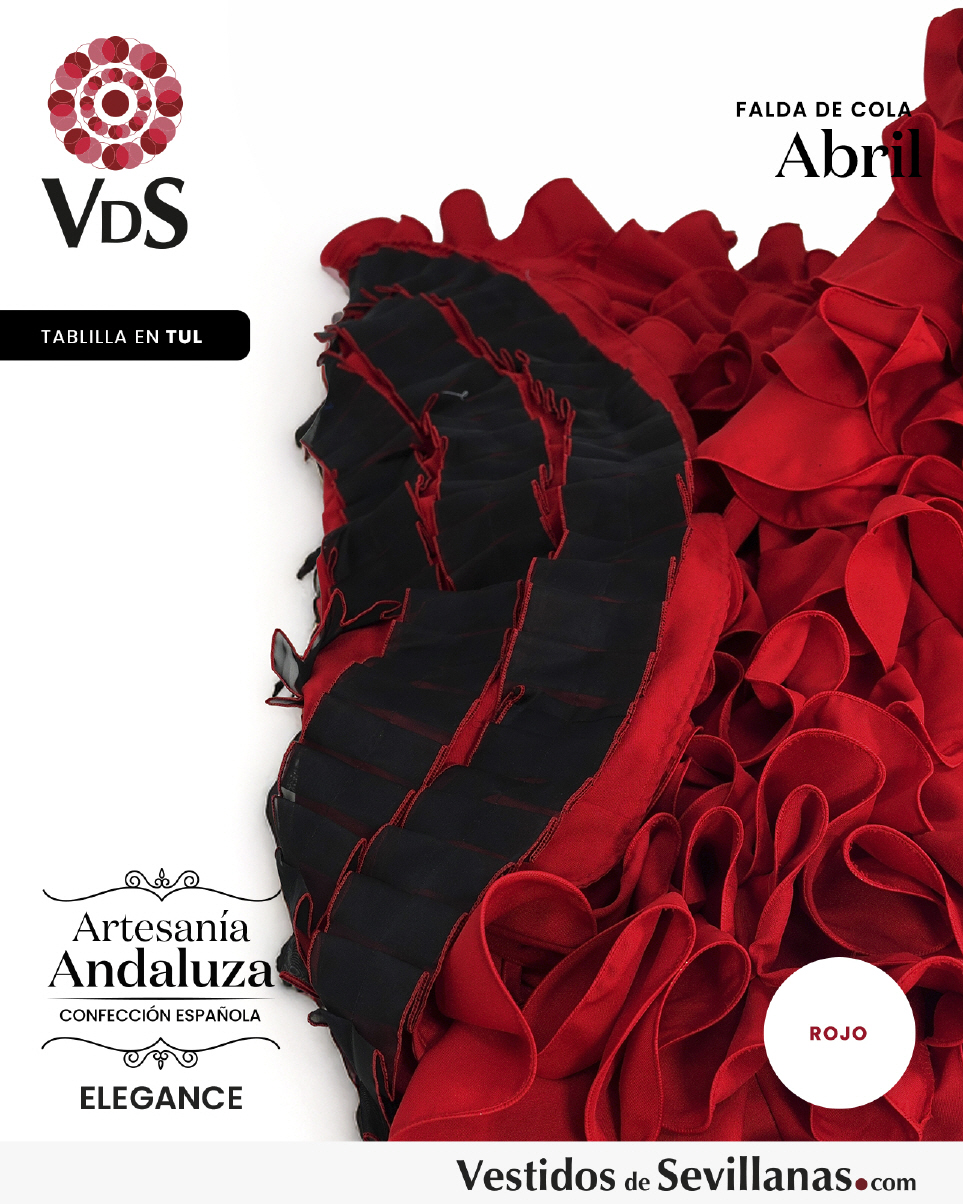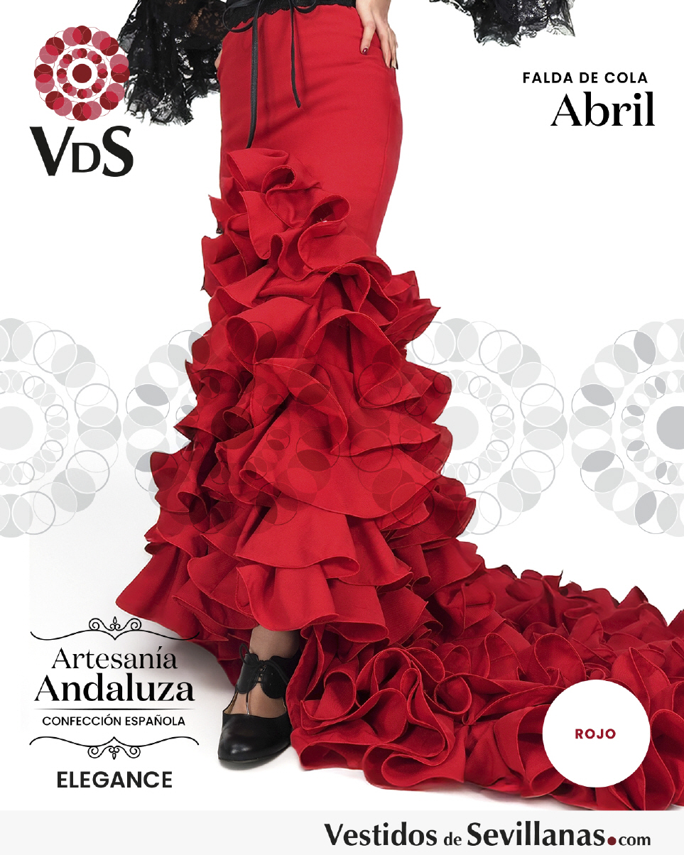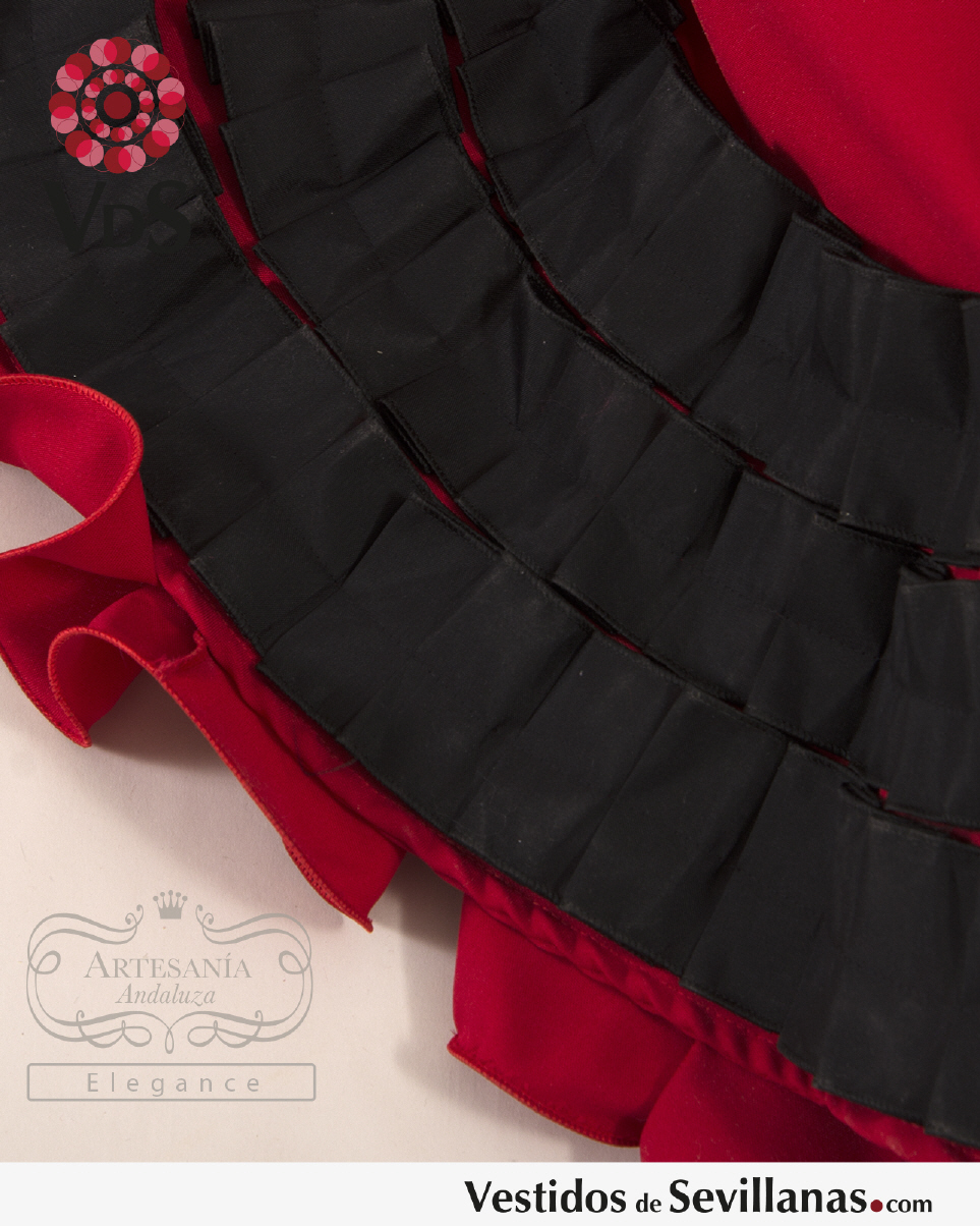 Falda de cola para baile flamenco en color rojo con tul rojo/negra.
