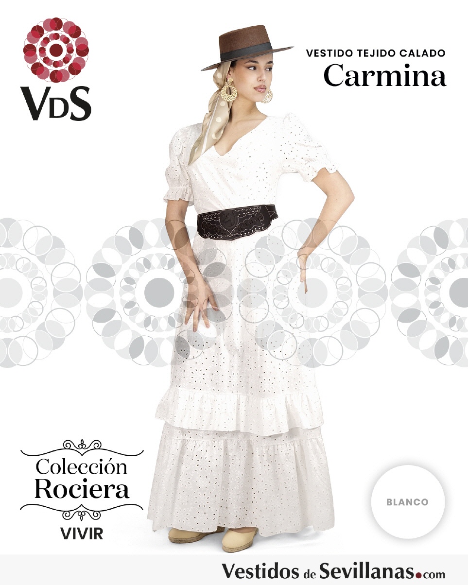 Bata rociera CAEMINA, nido de abeja elástico en la espalda, manga abullunada, falda muy cómoda ligera y fresca ideal para dias muy calurosos.