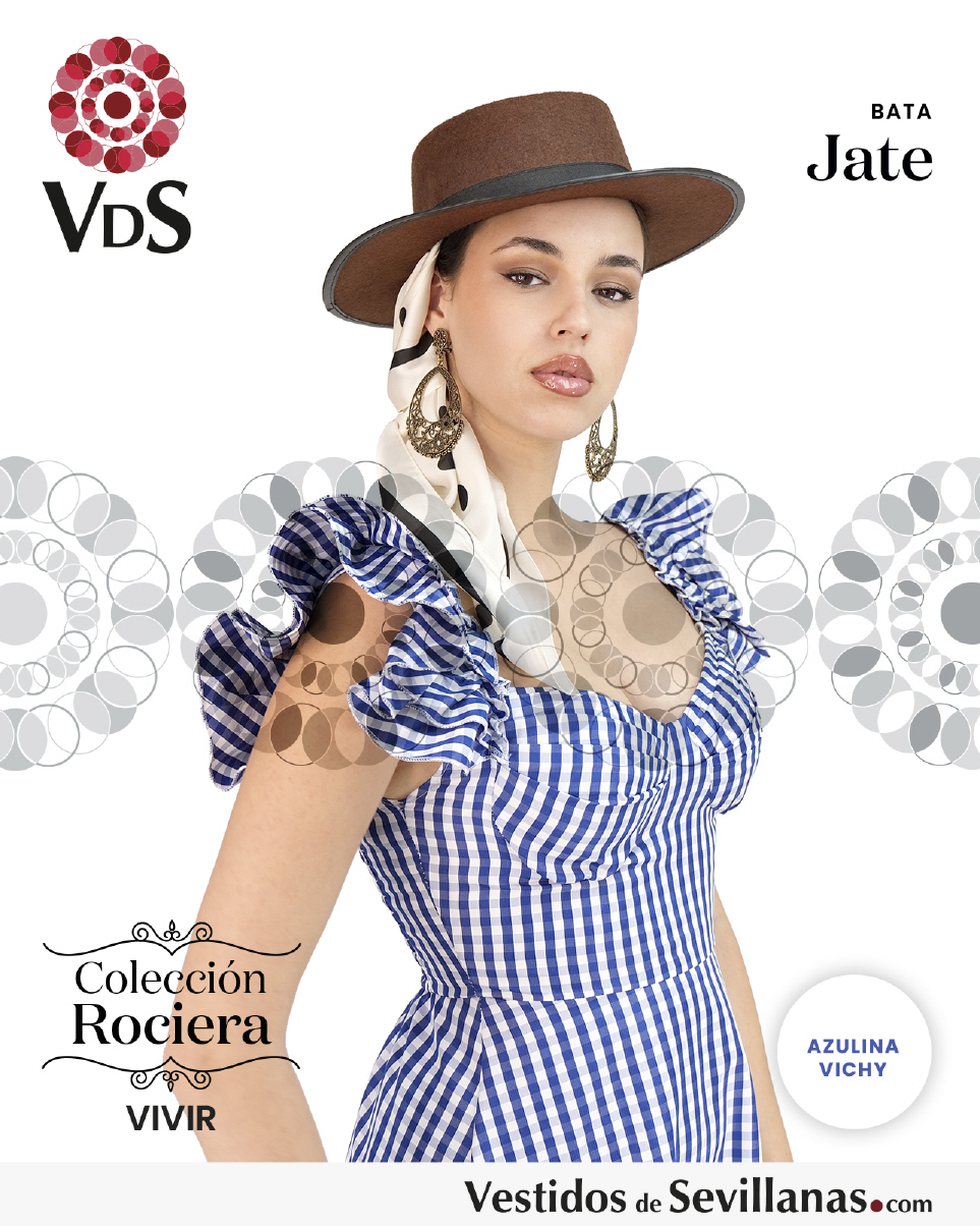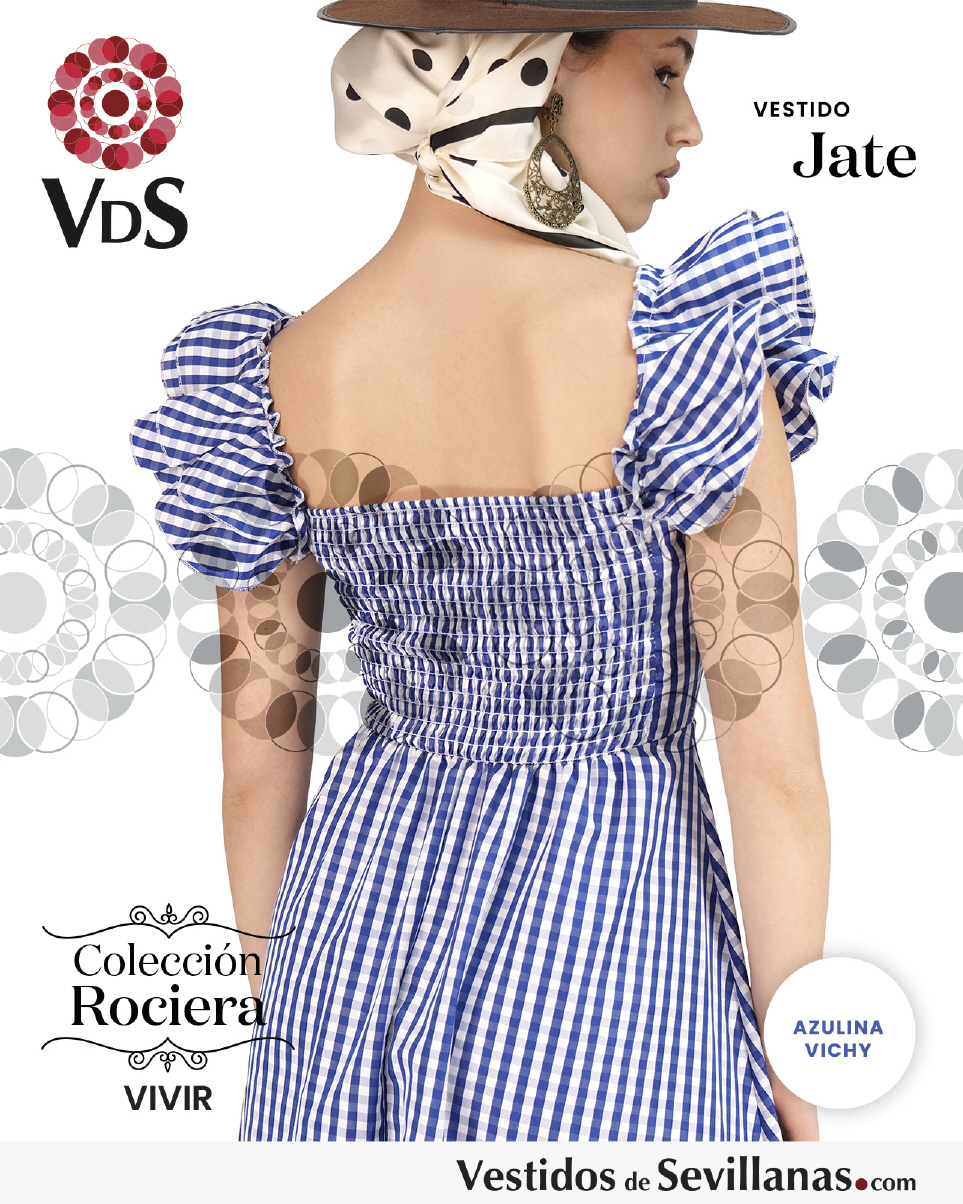 Bata rociera JATE, nido de abeja elástico en la espalda, un volante en el hombro, falda muy cómoda ligera y fresca ideal para dias muy calurosos.