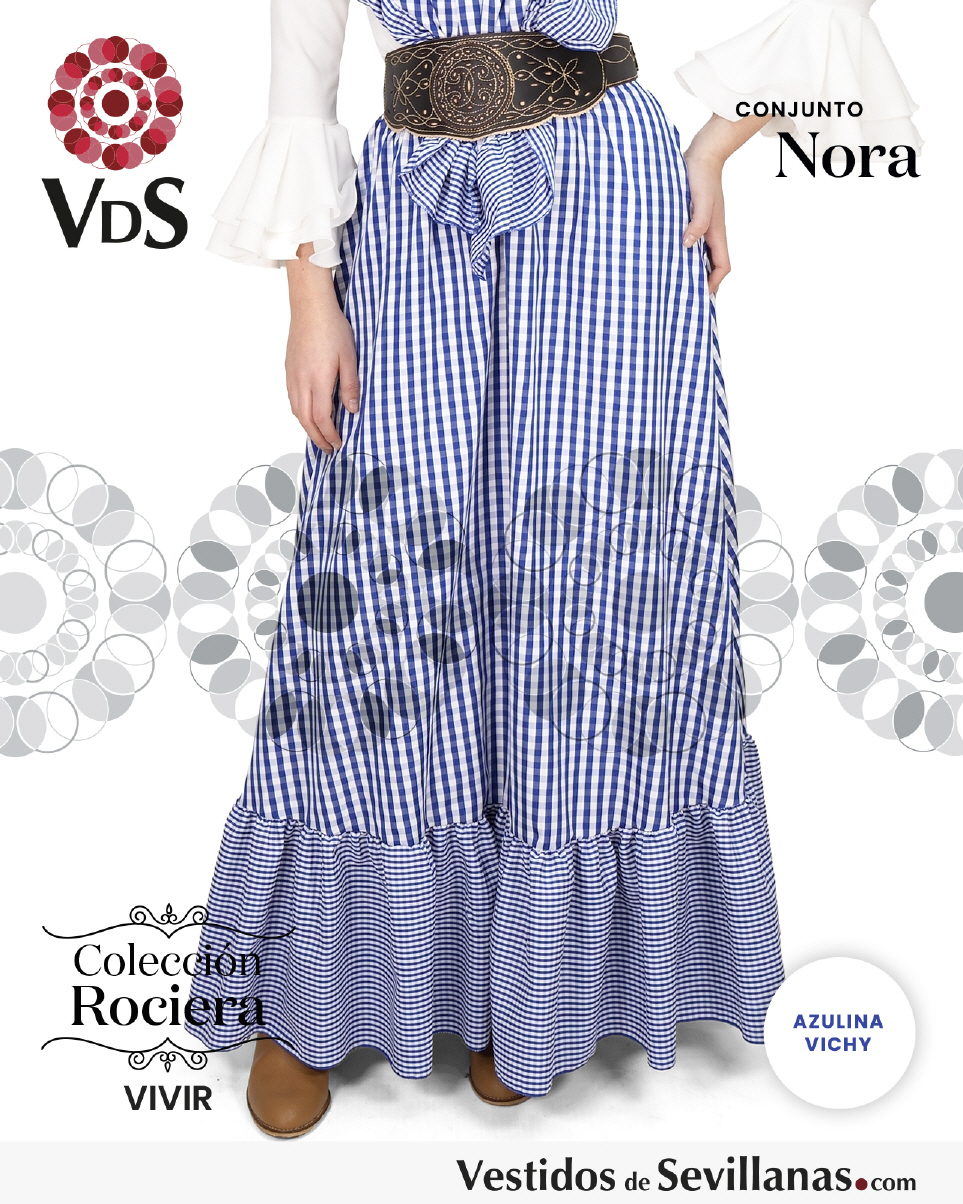Conjunto 2 Piezas: Pañoleta + Falda larga Rociera NORA, Cinturilla elástica, falda muy cómoda ligera y fresca ideal para dias muy calurosos.