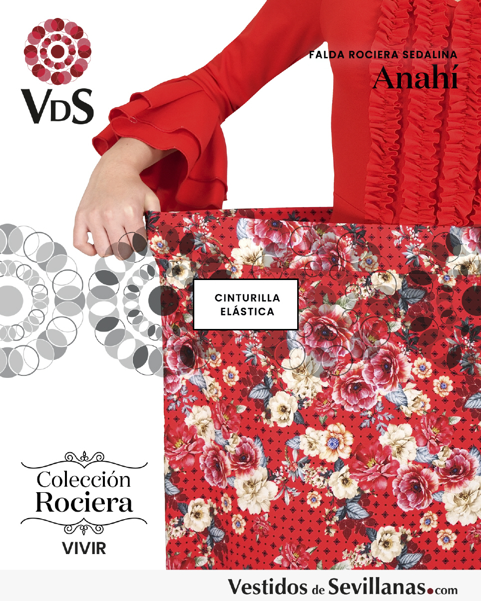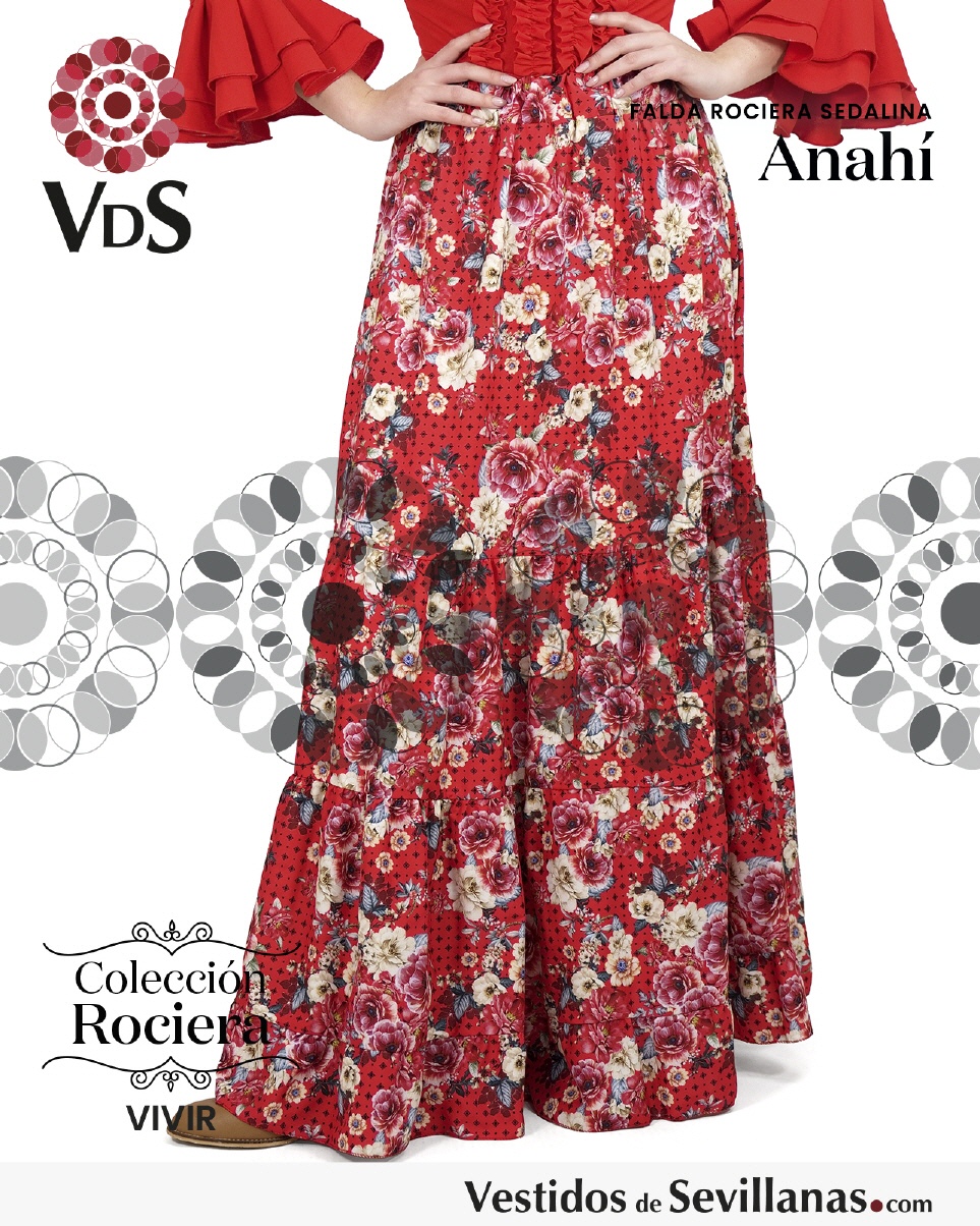 Falda larga Rociera ANAHÍ, Cinturilla elástica, falda muy cómoda ligera y fresca ideal para dias muy calurosos.