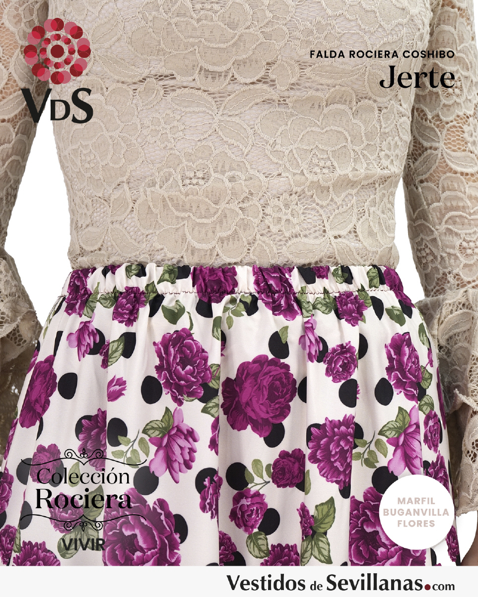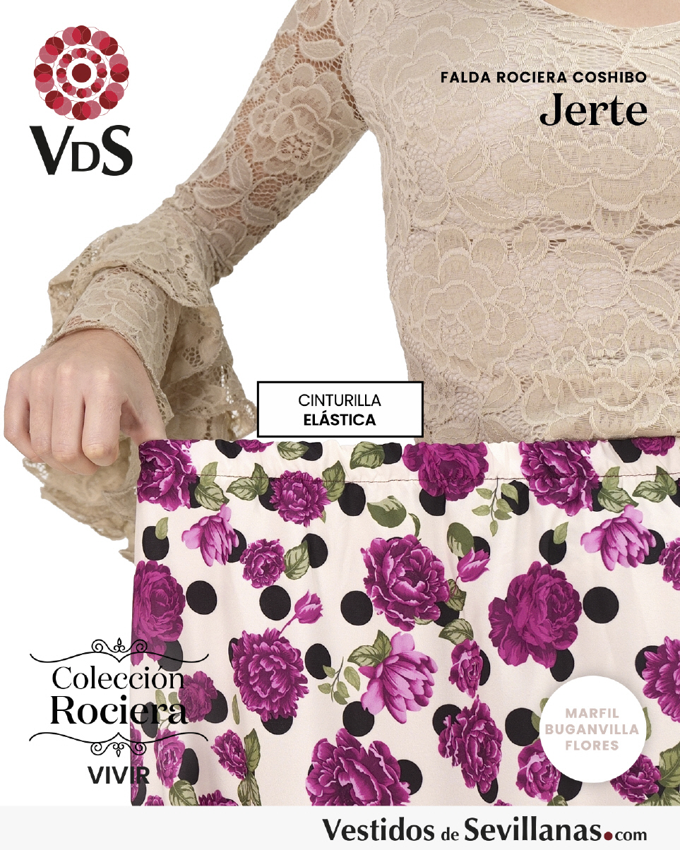 Falda Rociera JERTE Coshibo, Cinturilla elástica, falda muy cómoda ligera y fresca ideal para dias muy calurosos.