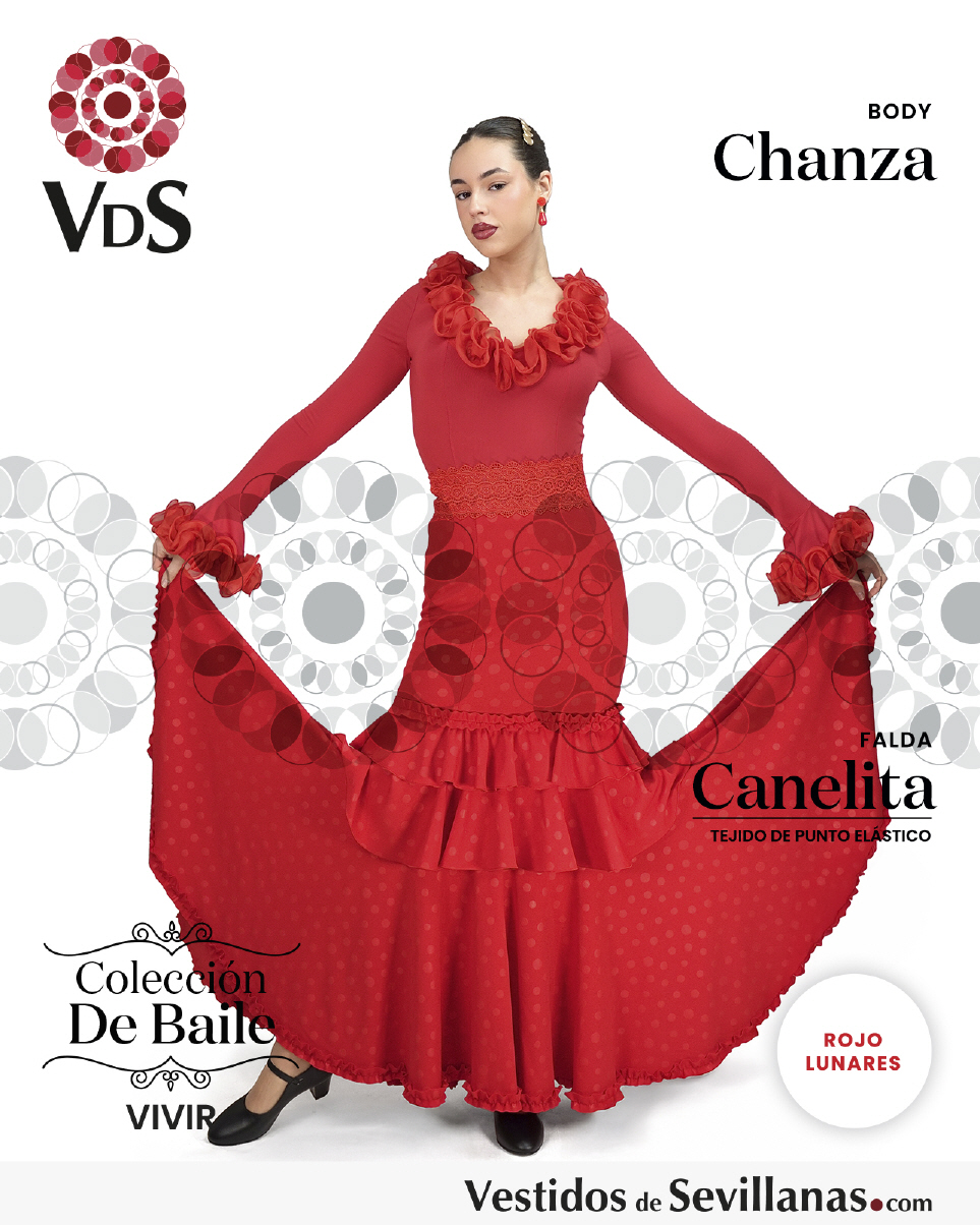 Falda elástica CANELITA. Falda entallada con 3Volantes y 2 Garruchas.