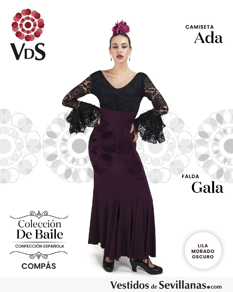 Falda GALA de talle alto, en color lila/morado oscuro.