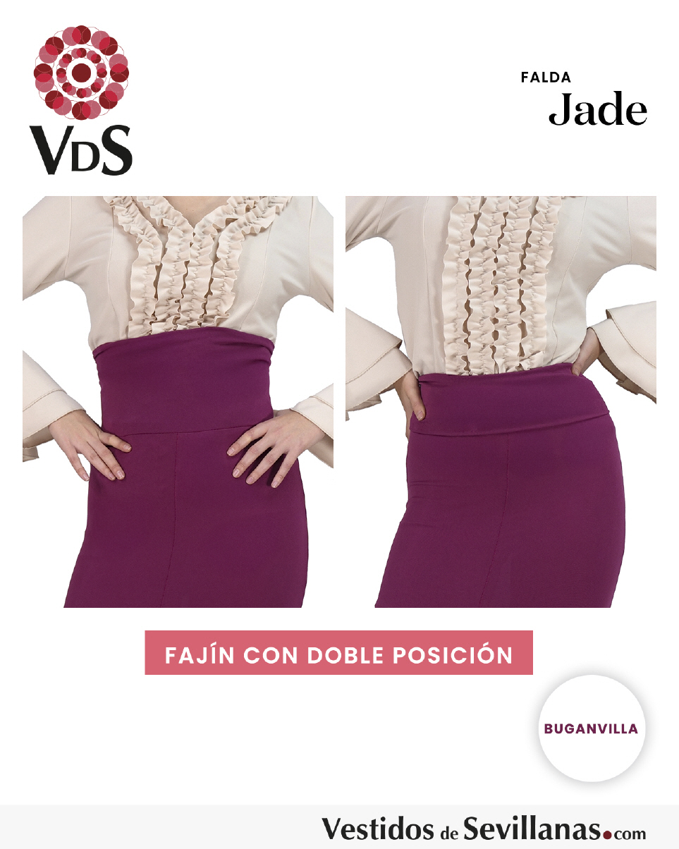 Falda entallada con fajin, 6 godets que salen de la rodilla, perfecta para ensayo y espectáculo.