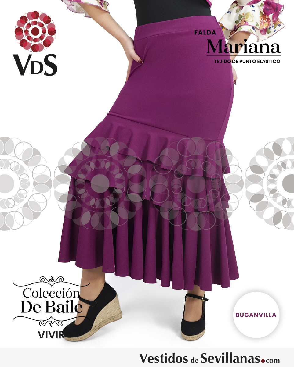 Falda elástica MARIANA. Falda entallada con 3 volantes.