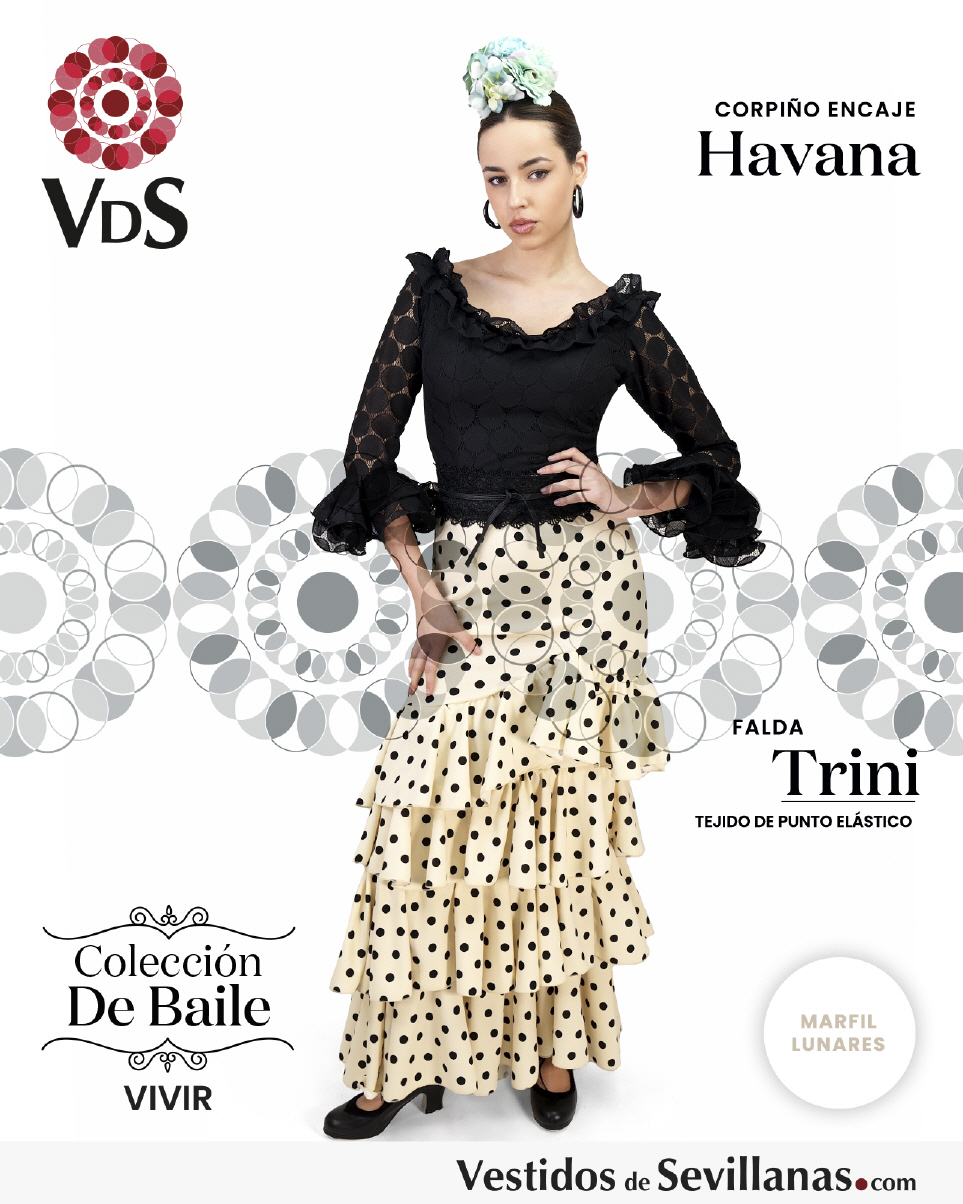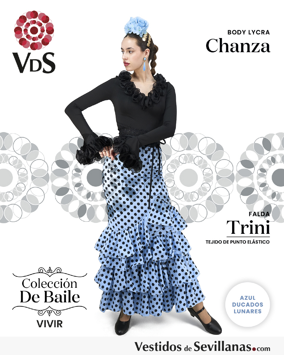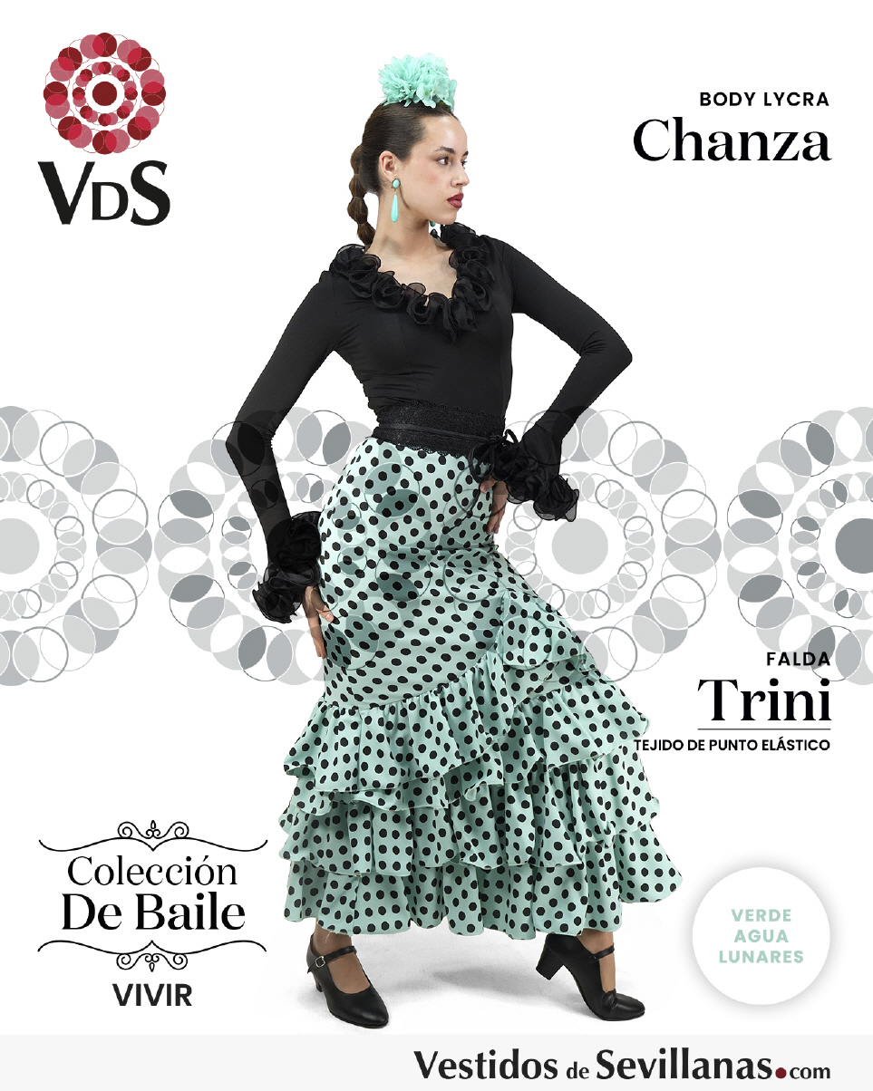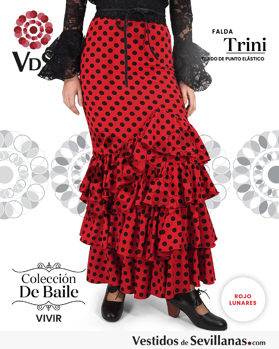 Falda elástica TRINI. Falda entallada con 4Volantes.