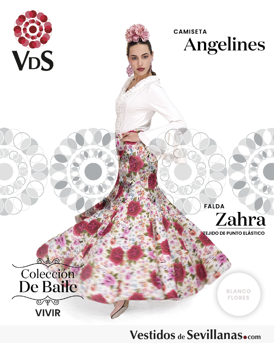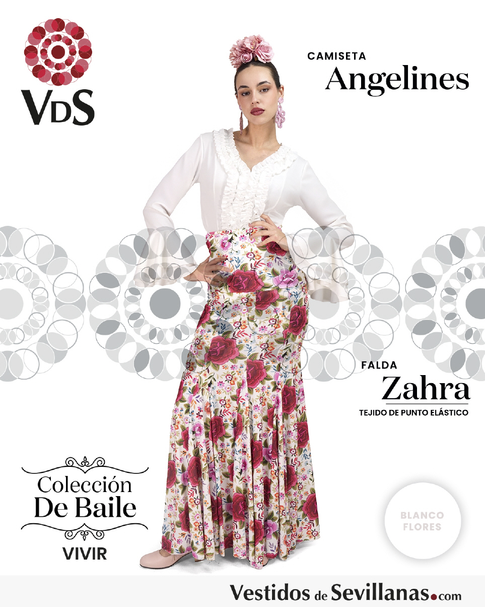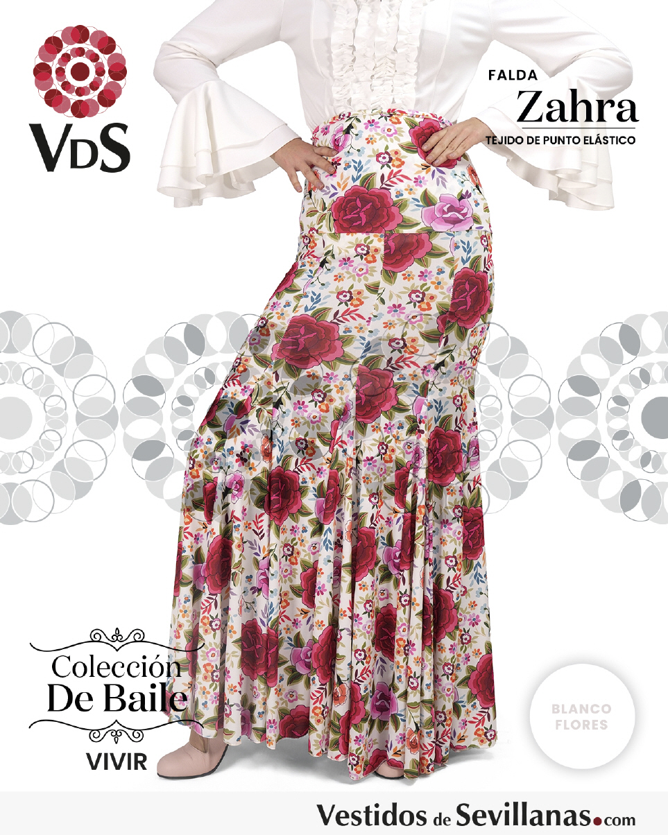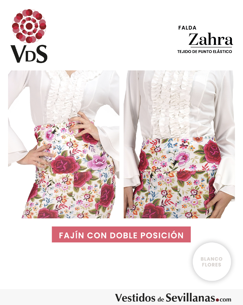 Falda ZAHRA Talle Alto. Falda entallada en color Marfil con flores Multicolor (sin forro).