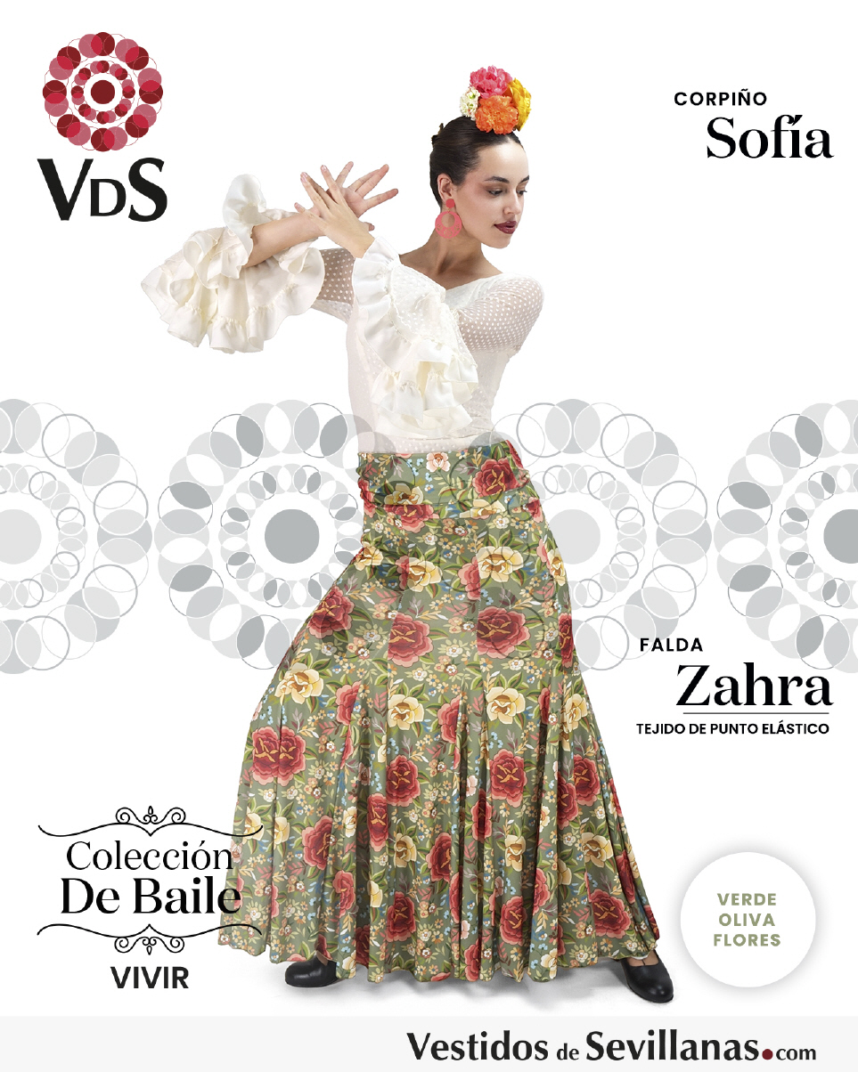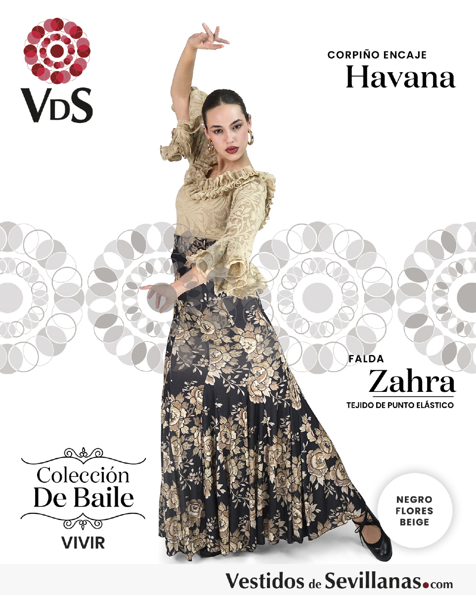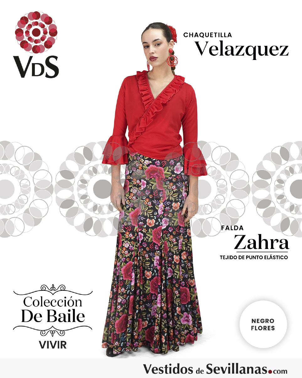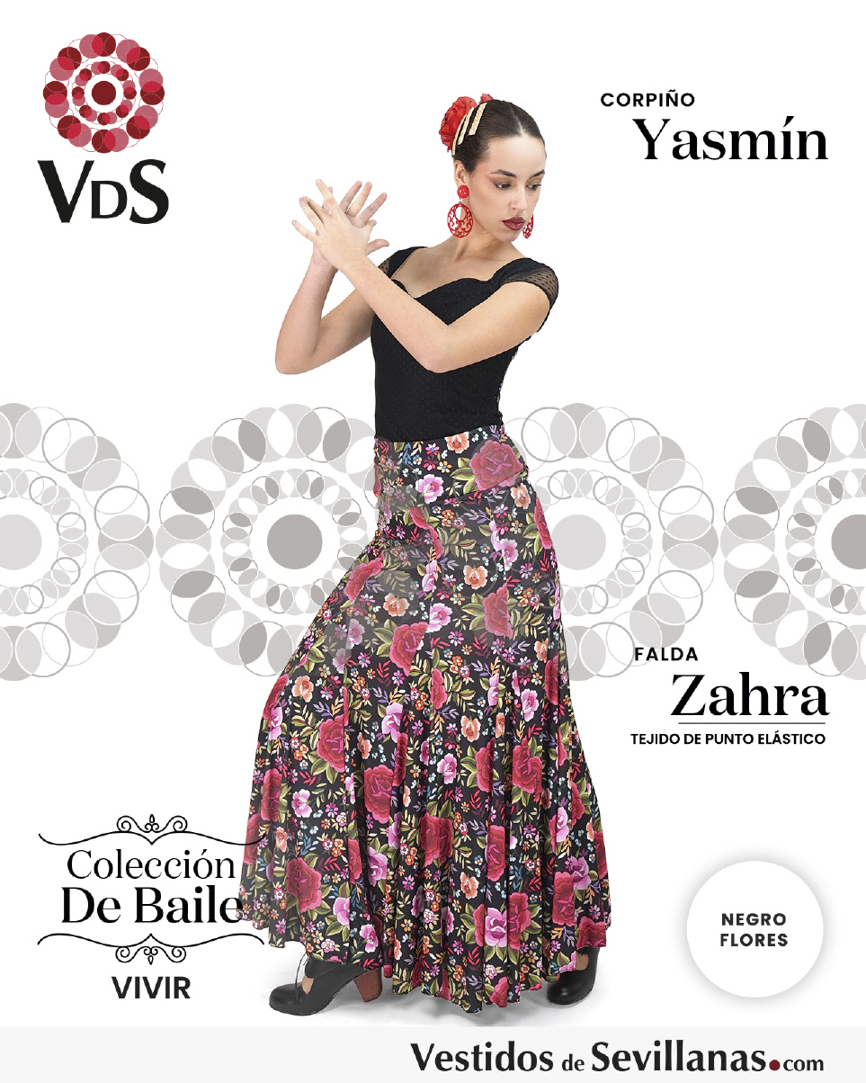 Falda ZAHRA Talle Alto. Falda entallada en color Negro con flores Multicolor (sin forro).