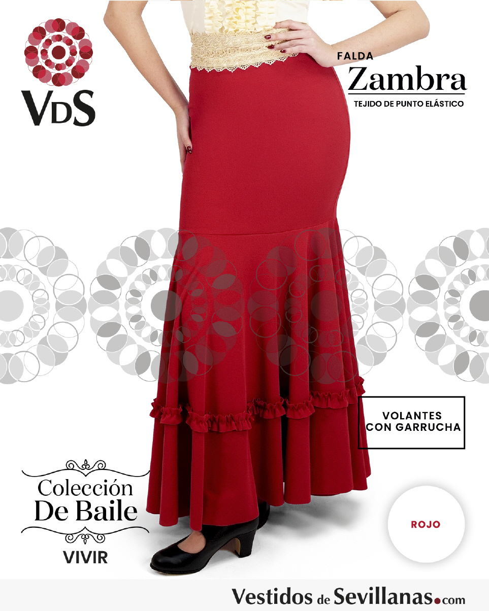 Falda elástica ZAMBRA. Falda entallada con garrucha y mucho vuelo.