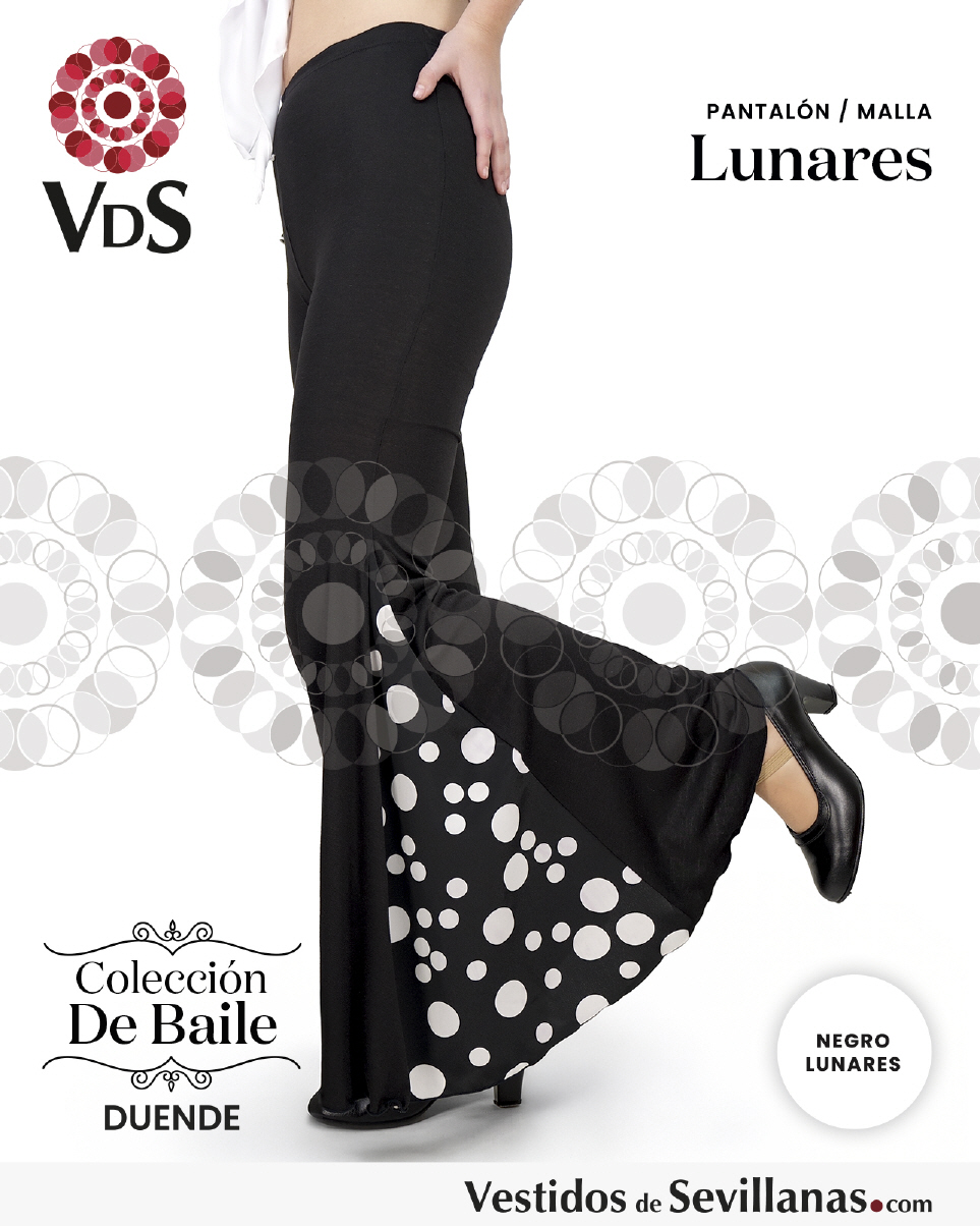 Pantalón/Malla LUNARES, ajustado tipo malla. En color negro y lunares blancos.