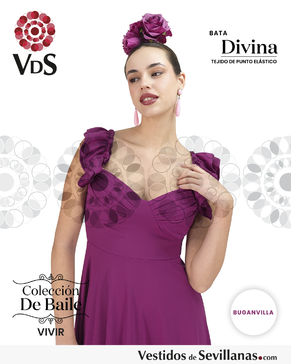 Bata de baile DIVINA un dos volantes en el hombro, falda con mucho vuelo y un volante.