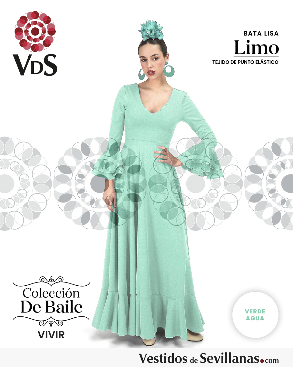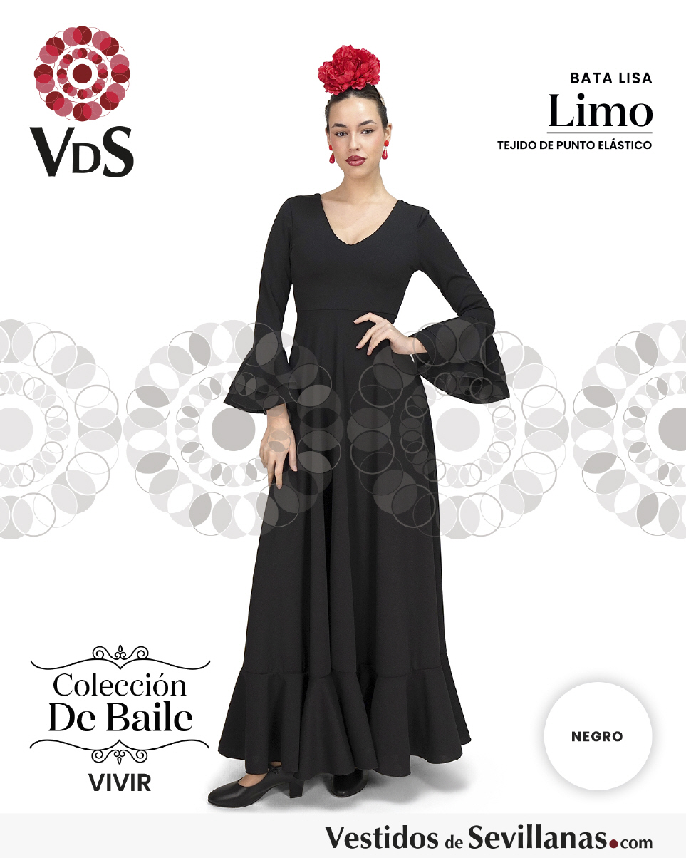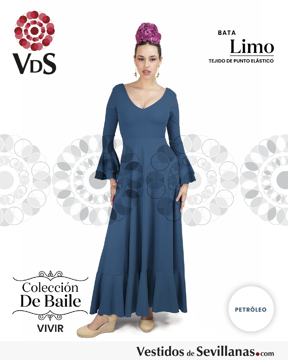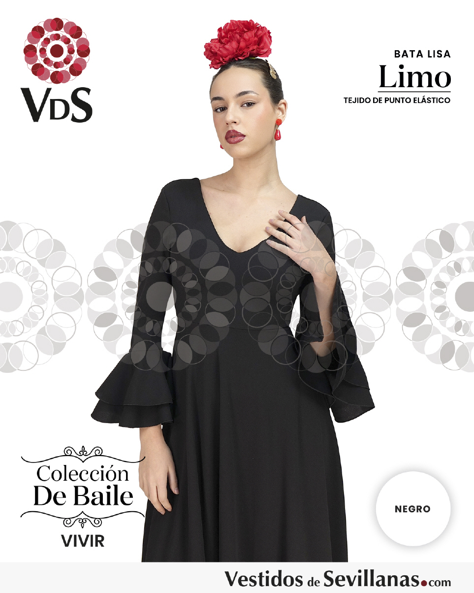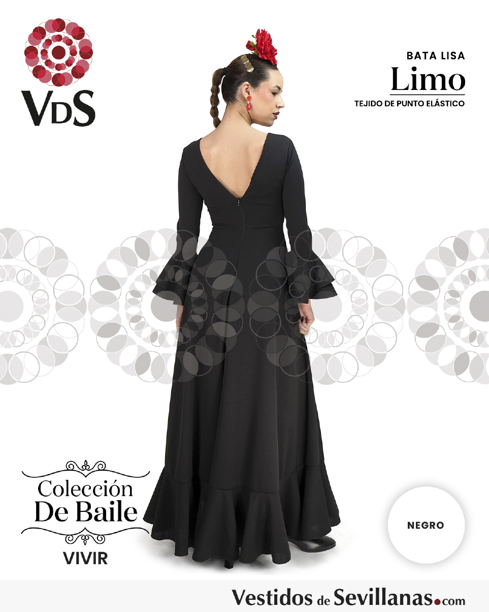 Bata de baile LIMO dosvolantes en la manga, falda con mucho vuelo y un volante.
