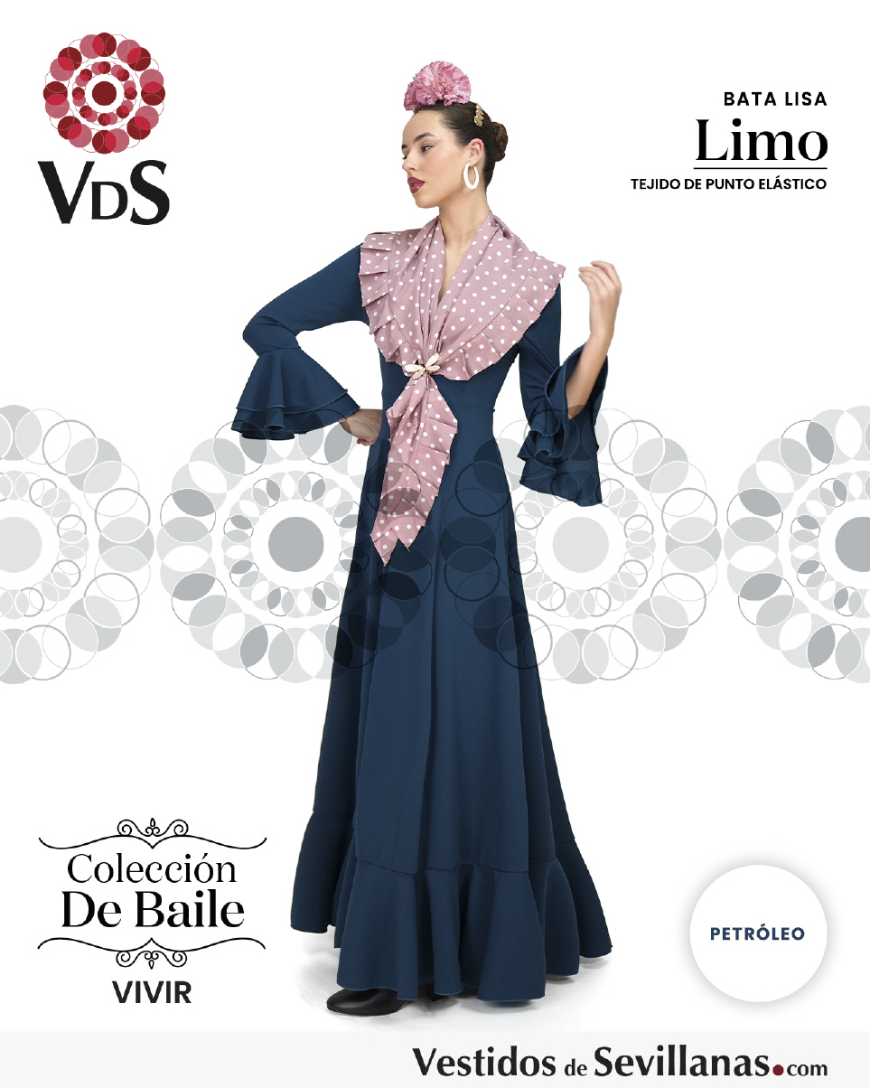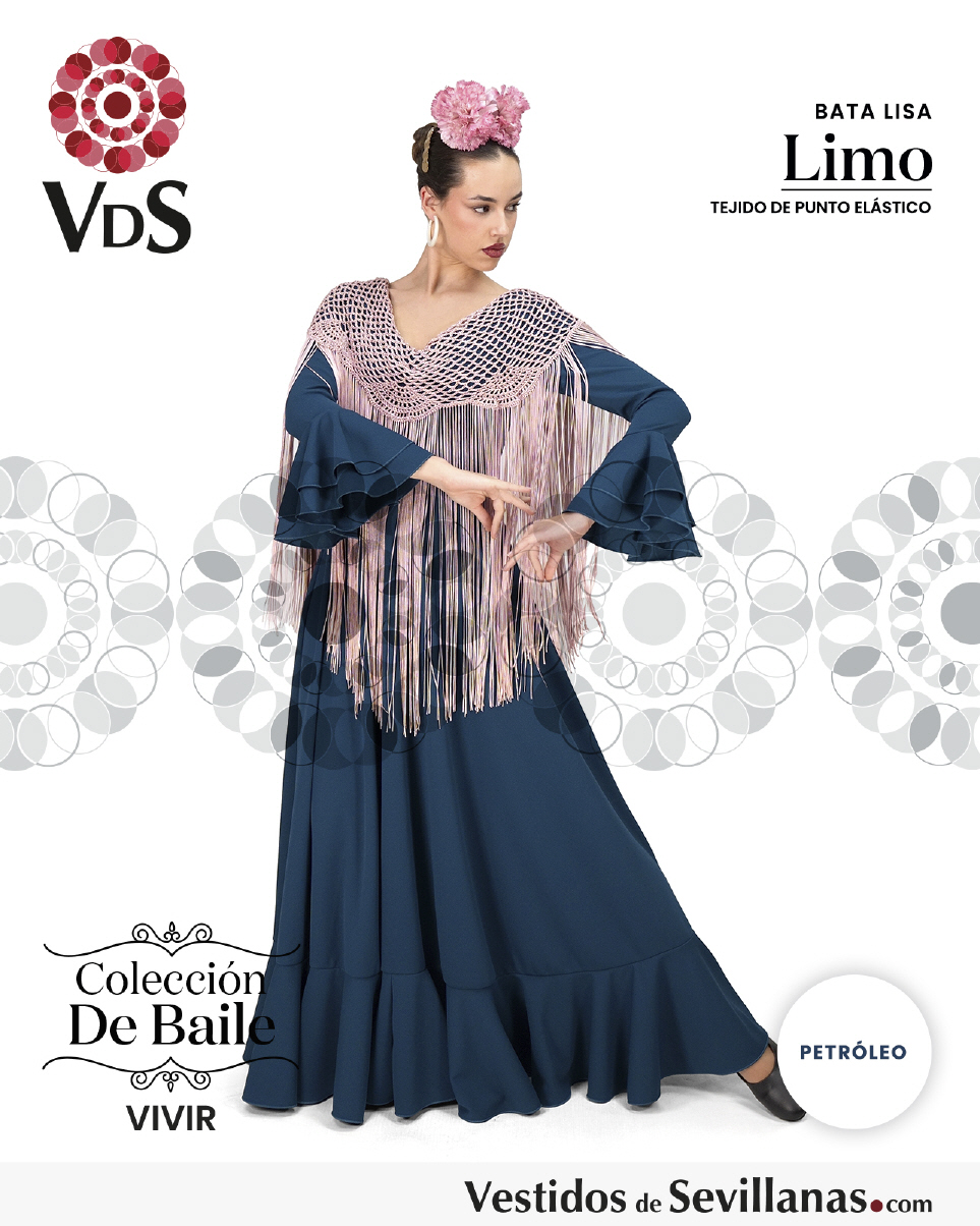 Bata de baile LIMO dos volantes en la manga, falda con mucho vuelo y un volante.