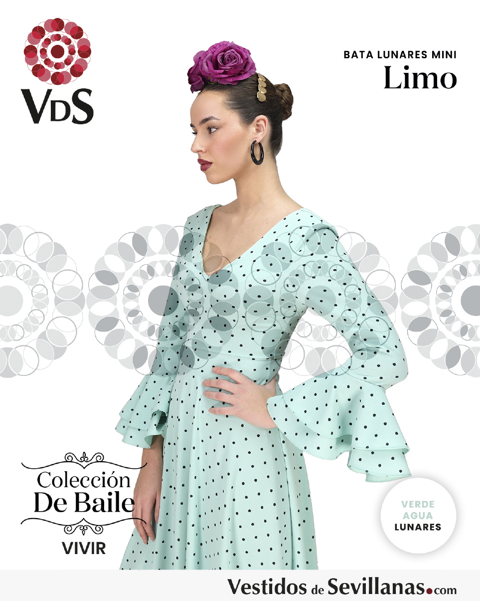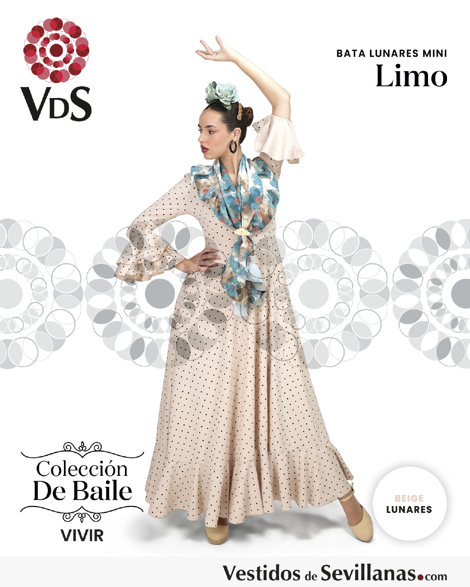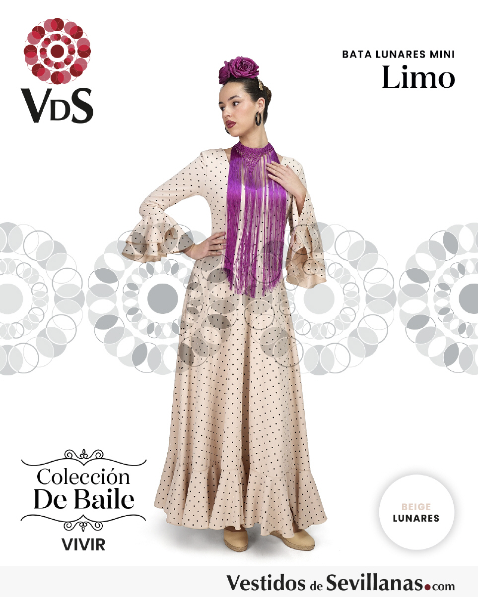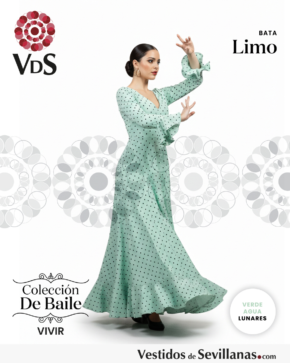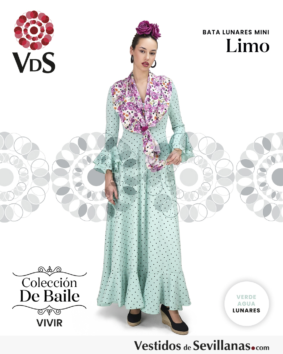 Bata de baile LIMO dos volantes en la manga, falda con mucho vuelo y un volante.