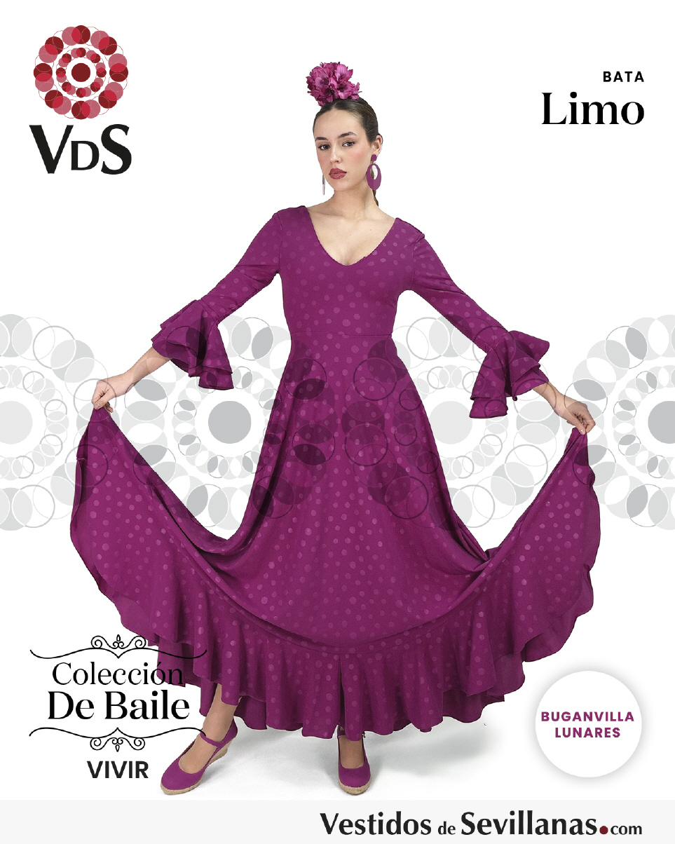 Bata de baile LIMO dos volantes en la manga, falda con mucho vuelo y un volante.