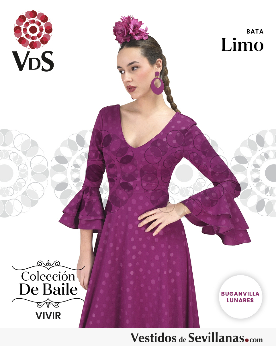 Bata de baile LIMO dos volantes en la manga, falda con mucho vuelo y un volante.