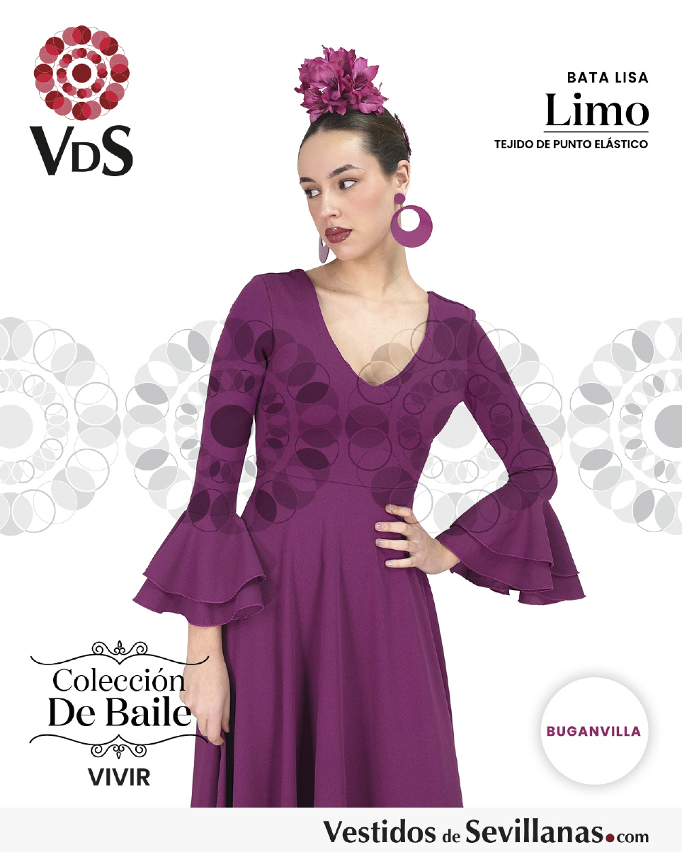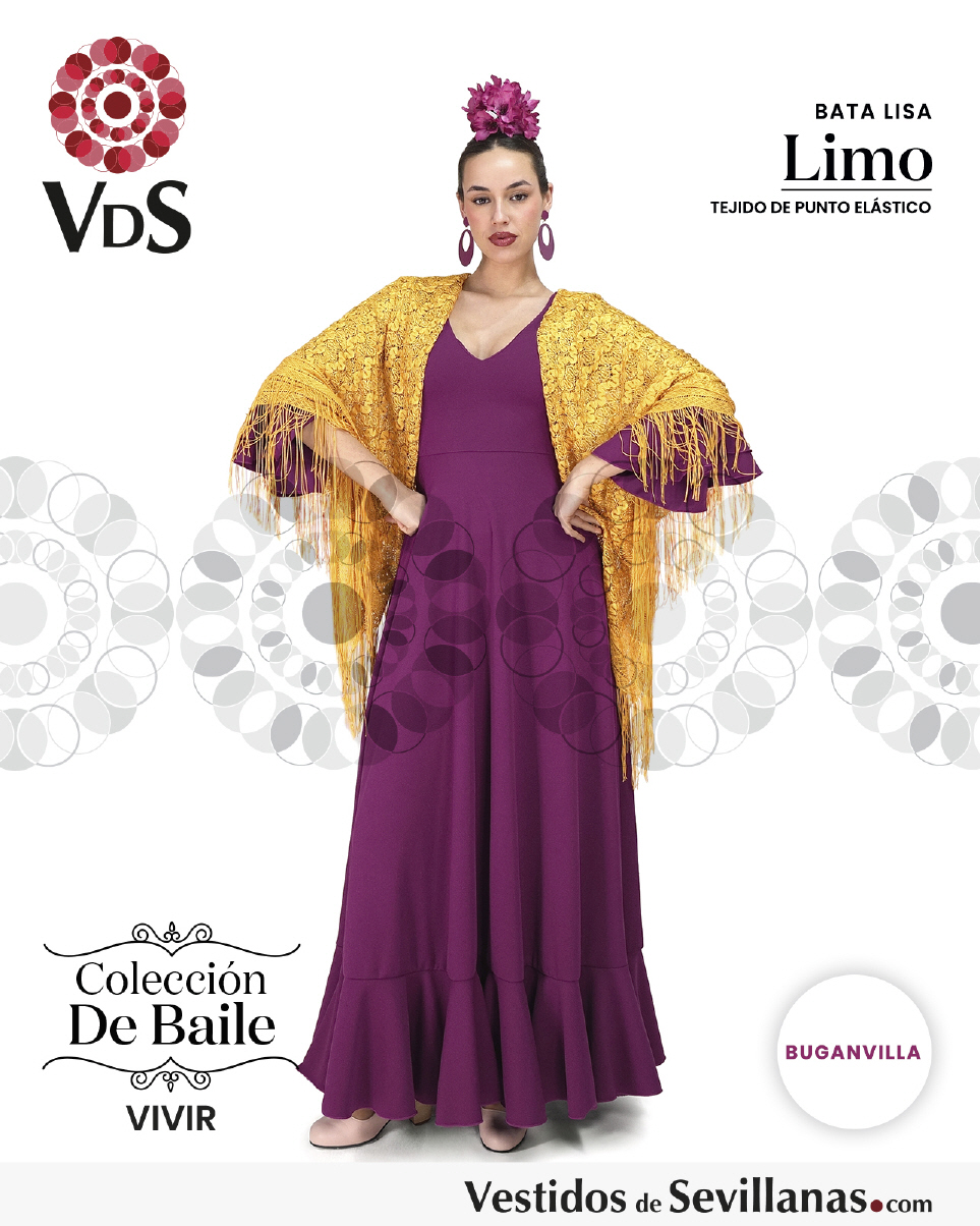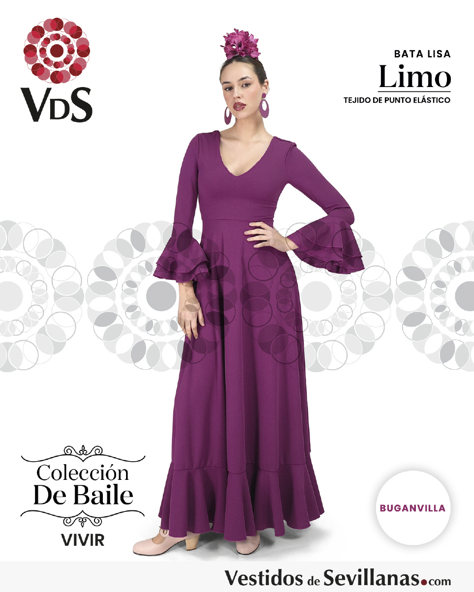 Bata de baile LIMO dosvolantes en la manga, falda con mucho vuelo y un volante.