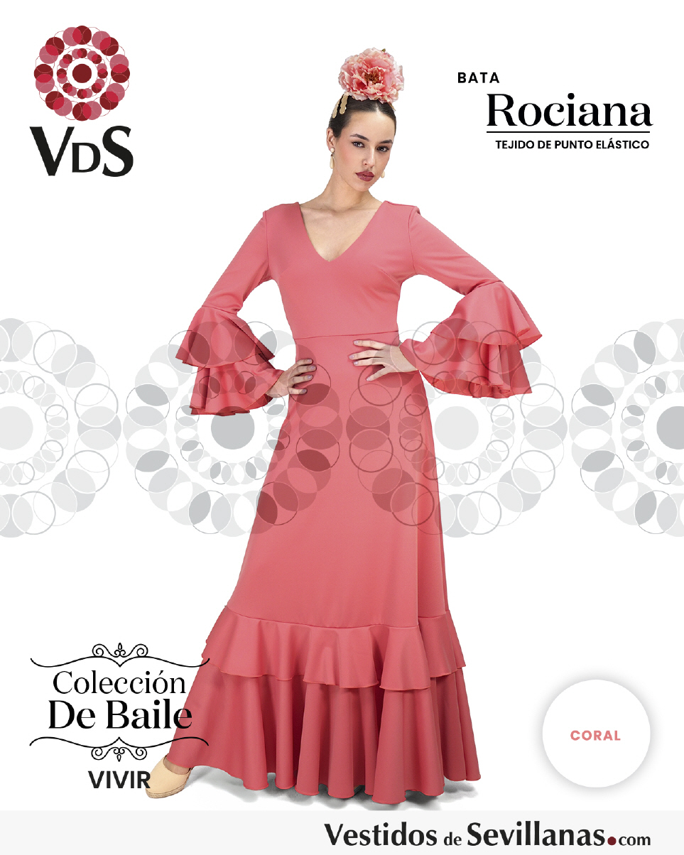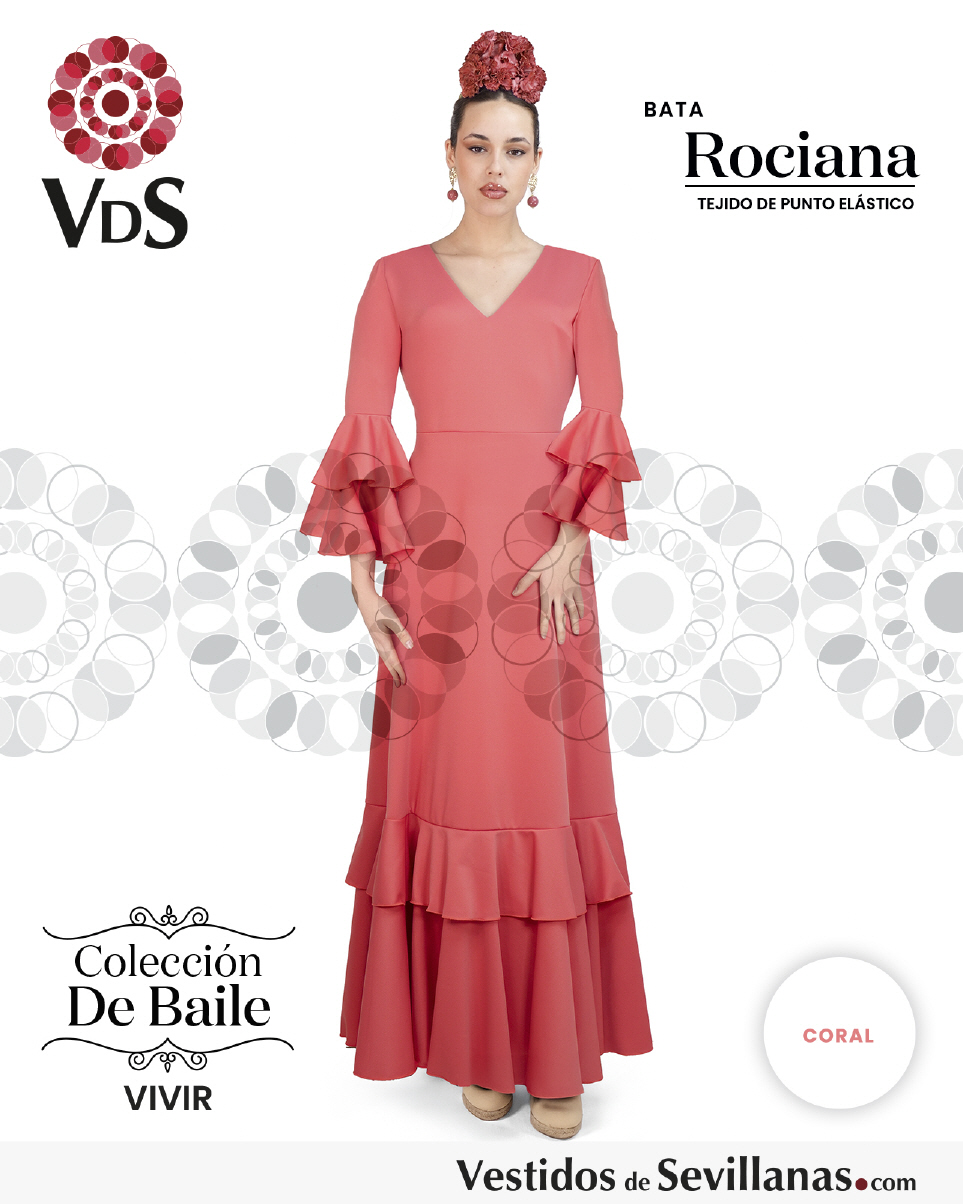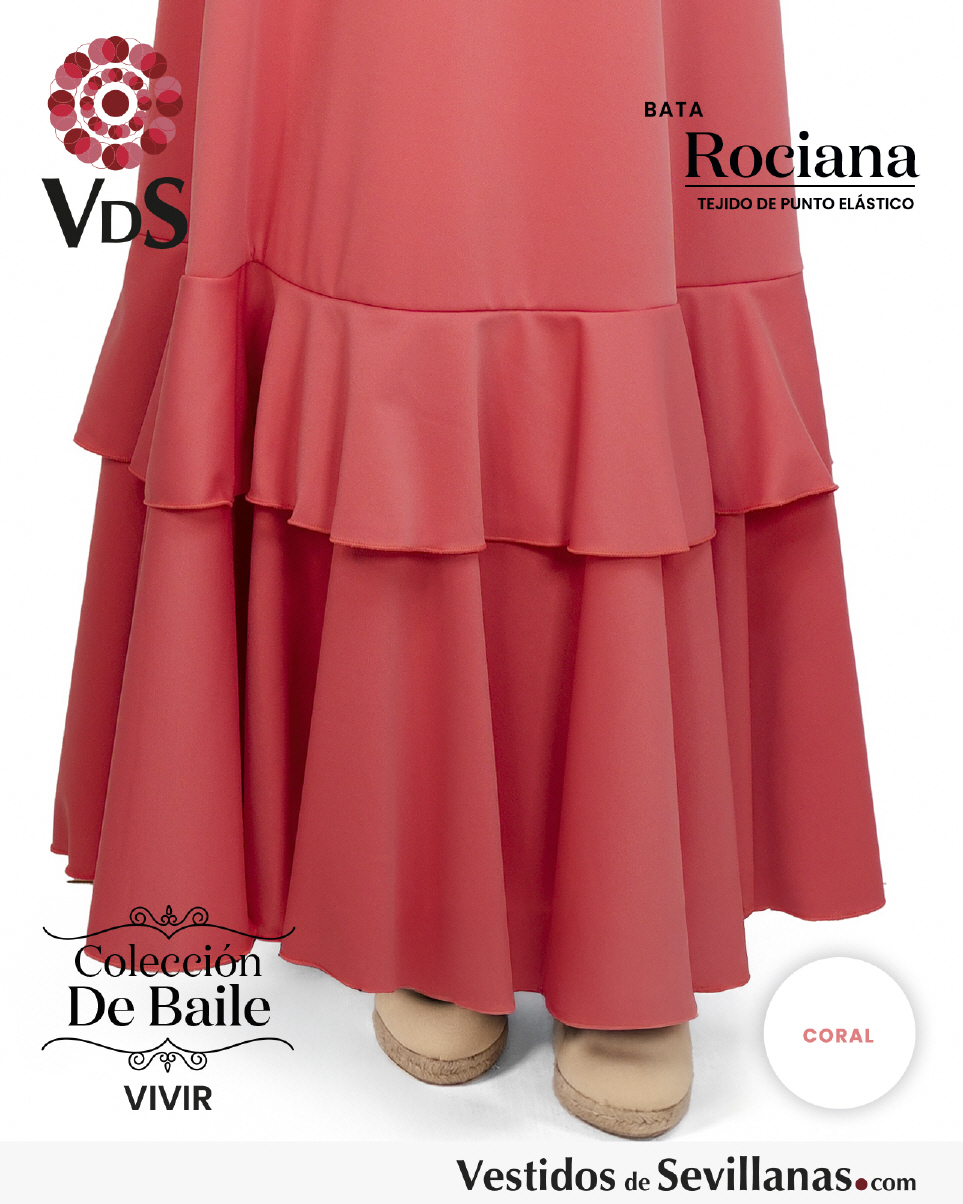 Bata de baile ROCIANA dos volantes en la manga, falda con mucho vuelo y un volante.