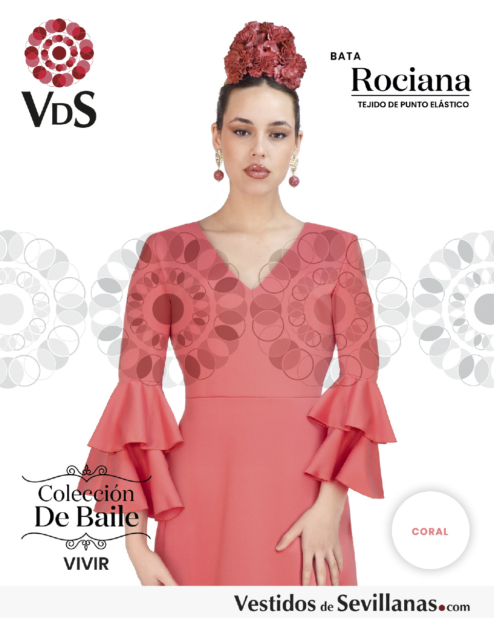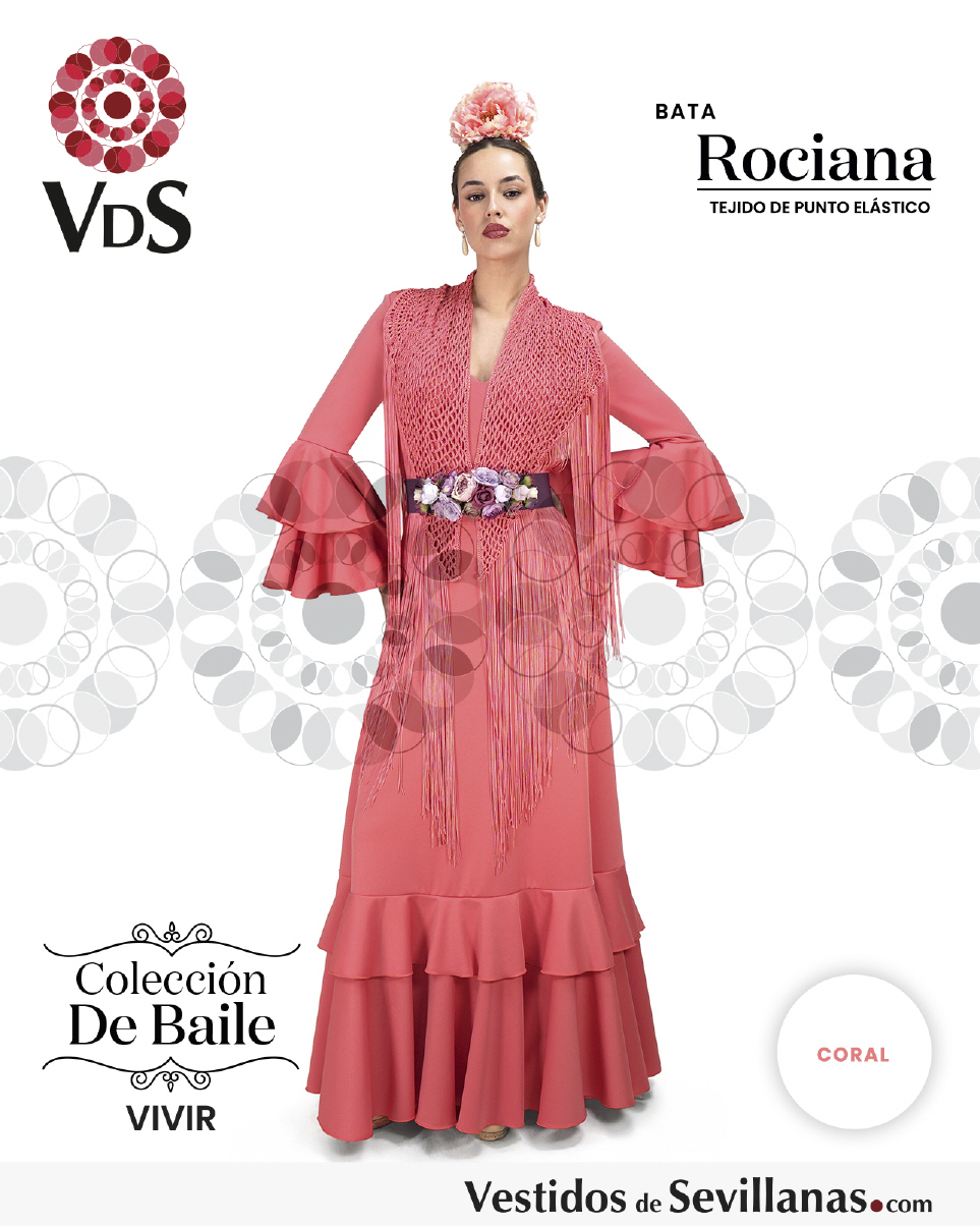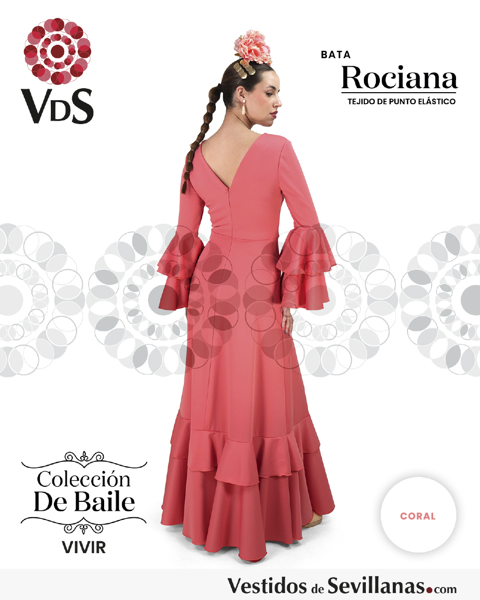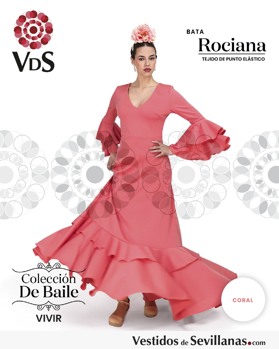 Bata de baile ROCIANA dos volantes en la manga, falda con mucho vuelo y un volante.