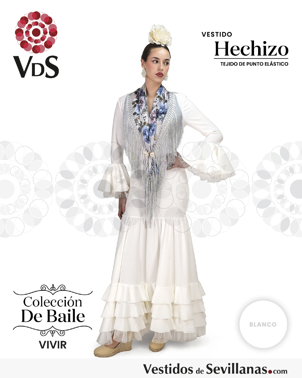Traje HECHIZO para baile escote drapeado con dos volantes en la manga con tul , falda con 4 volantes uno de ellos en tul.