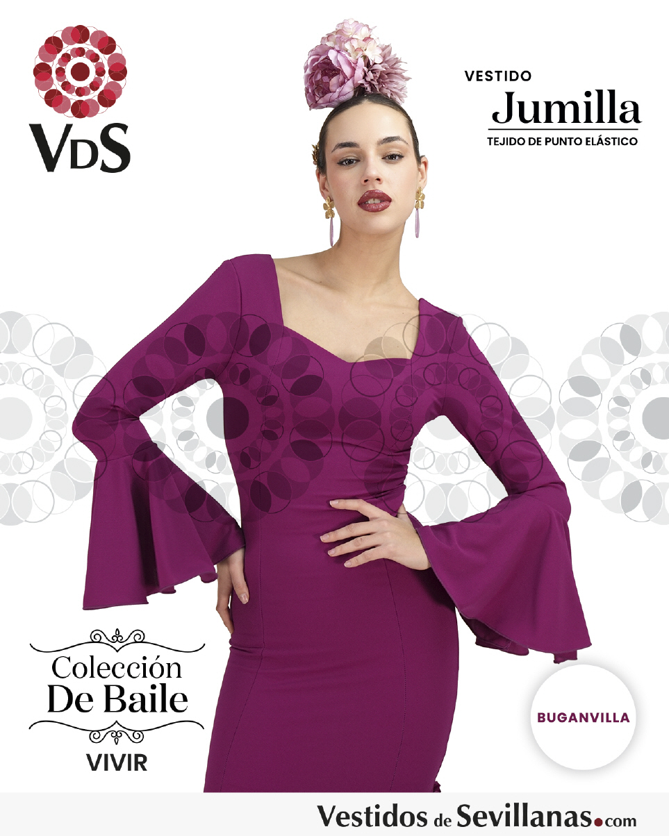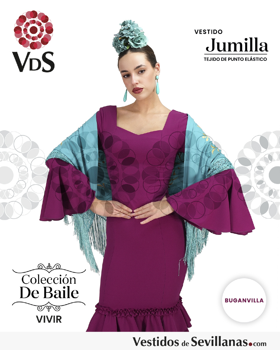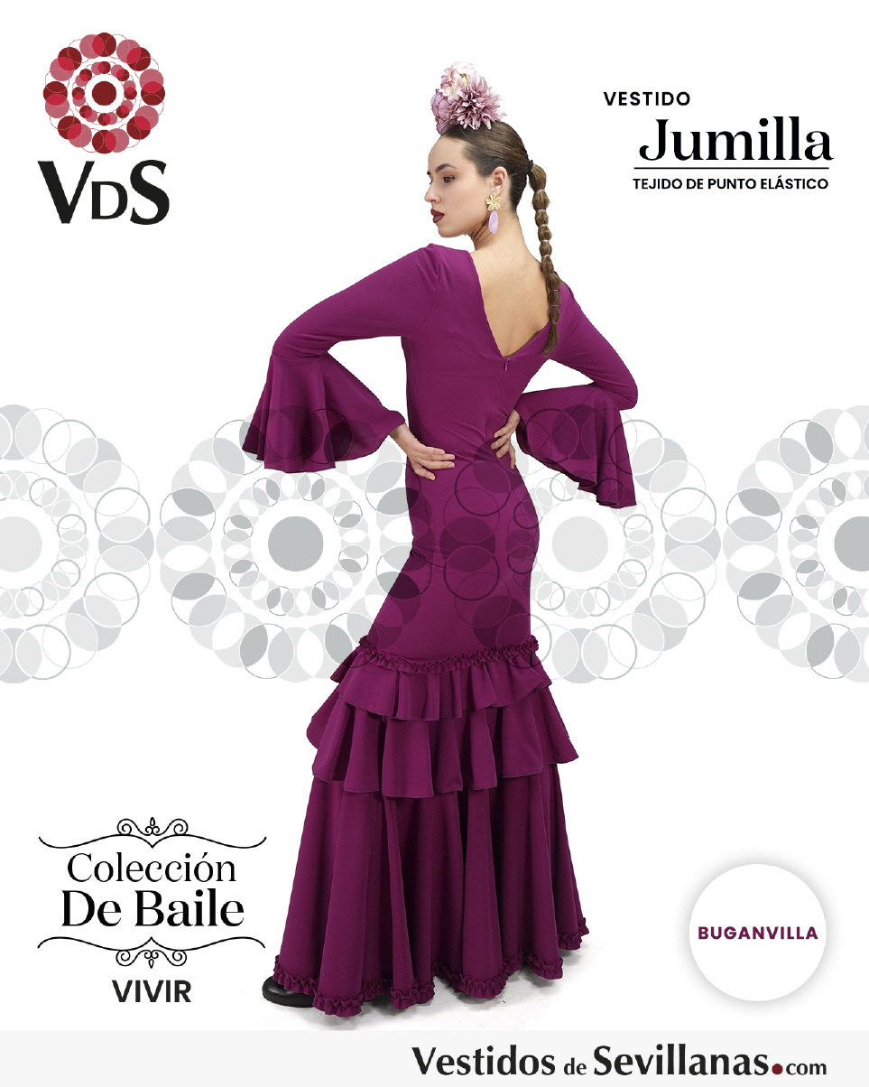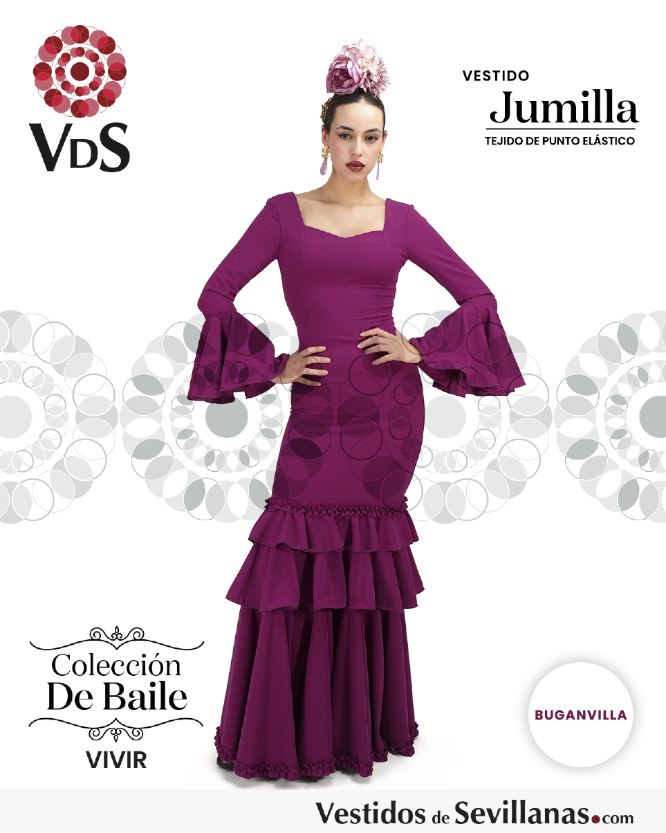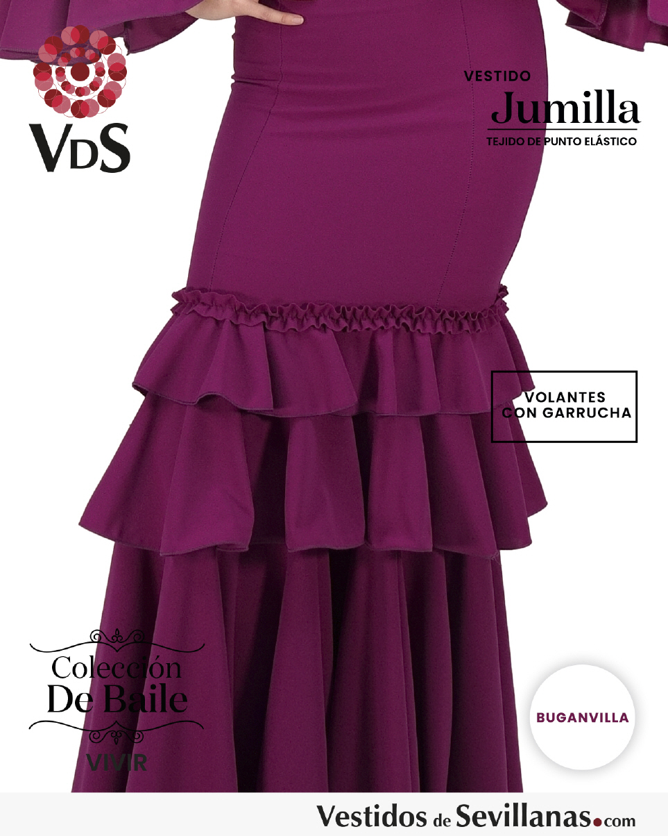 Traje JUMILLA para baile escote corazón con dos volantes en la manga, falda con tres volantes con garrucha.