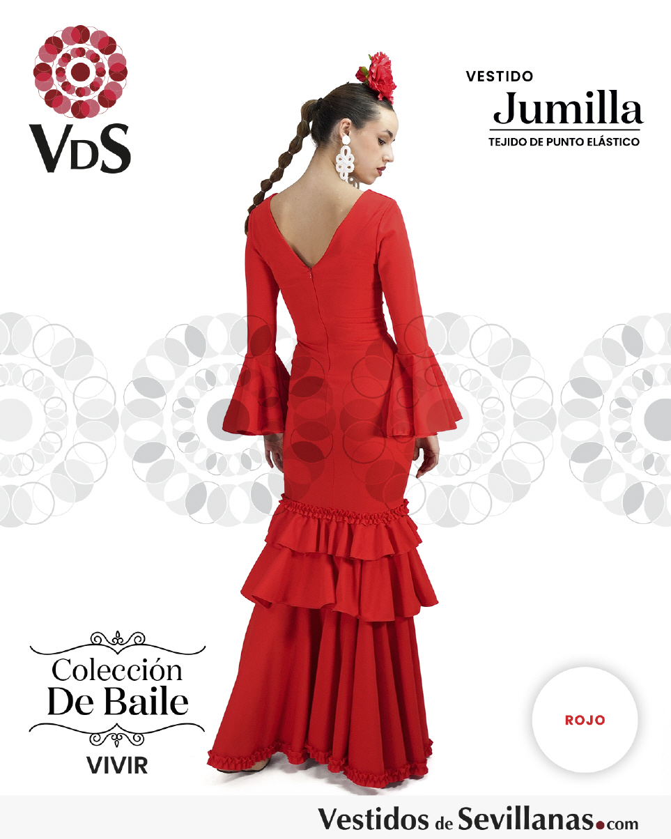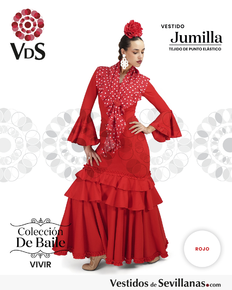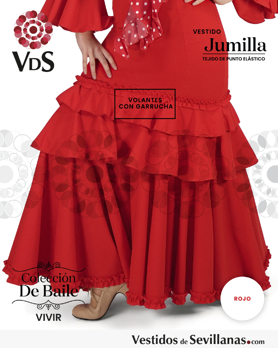 Traje JUMILLA para baile escote corazón con dos volantes en la manga, falda con tres volantes con garrucha.