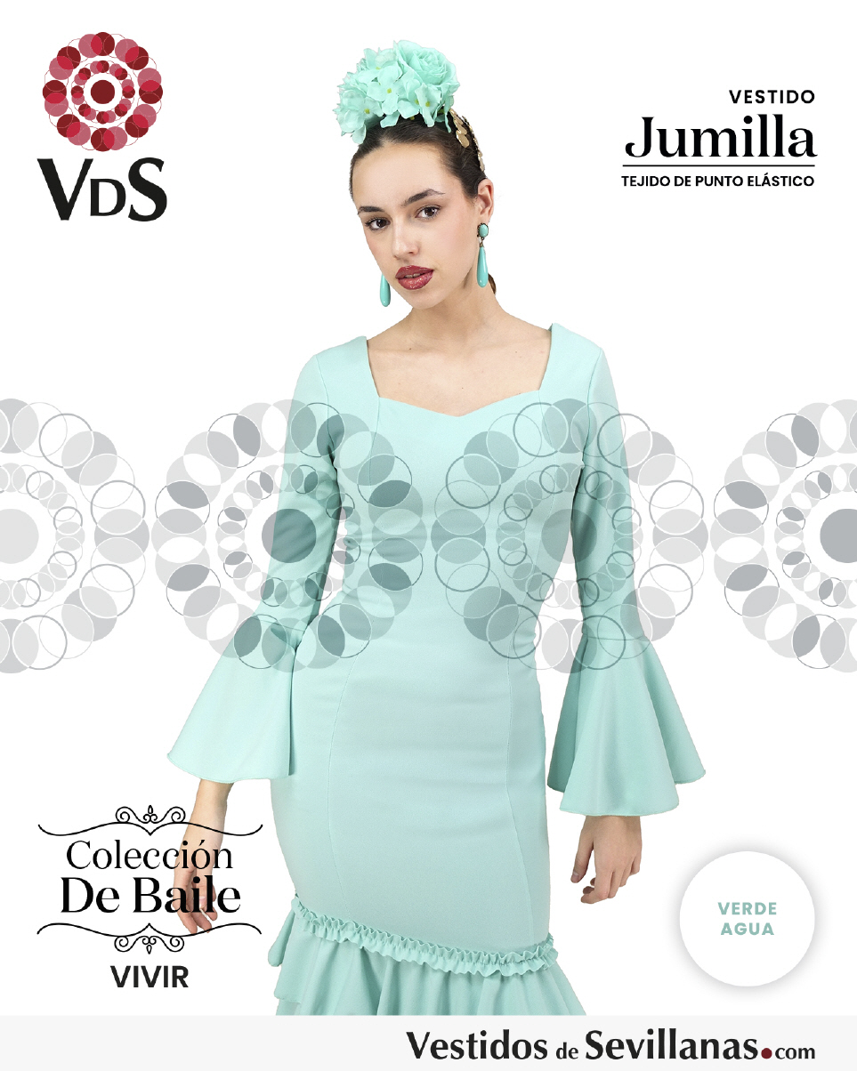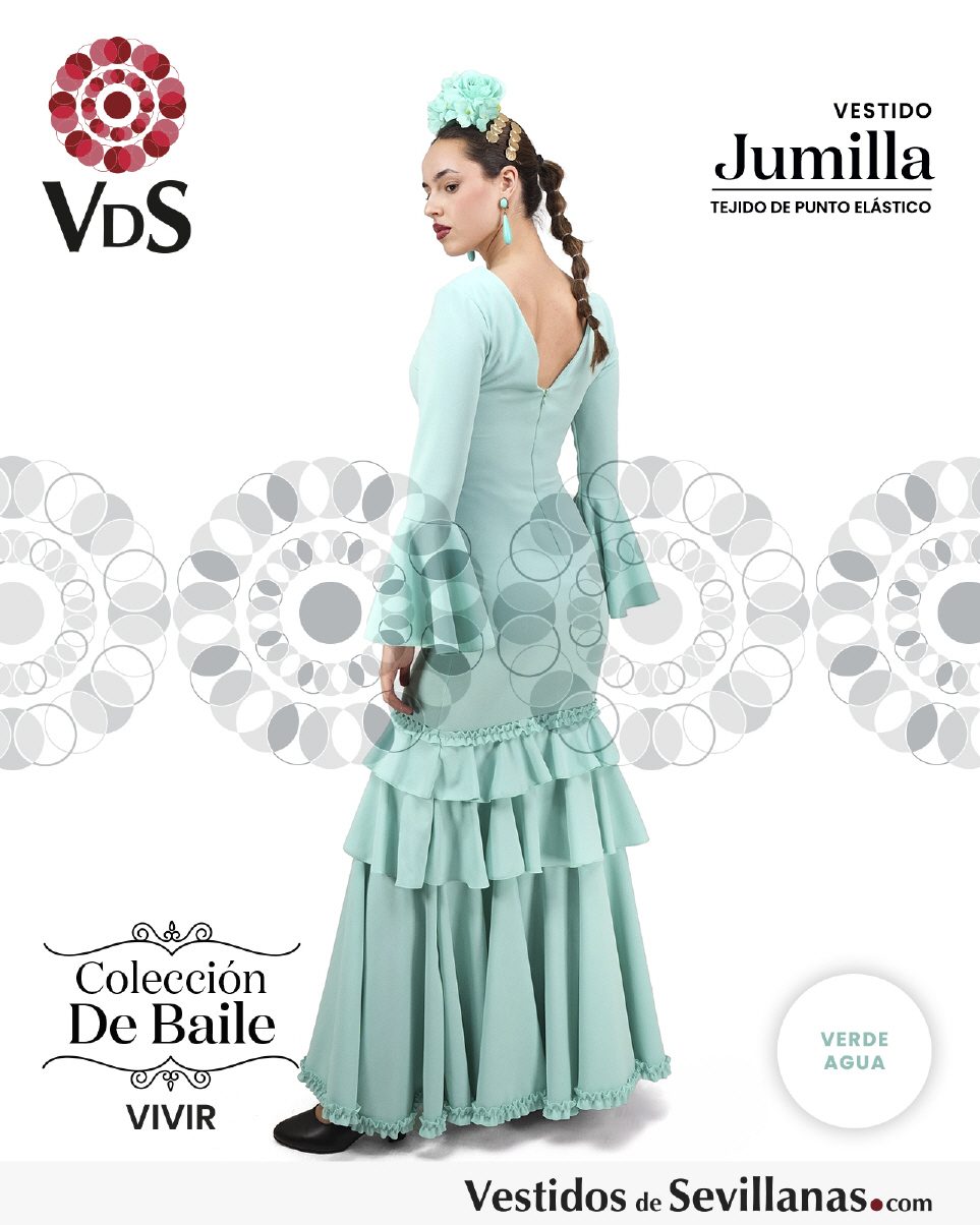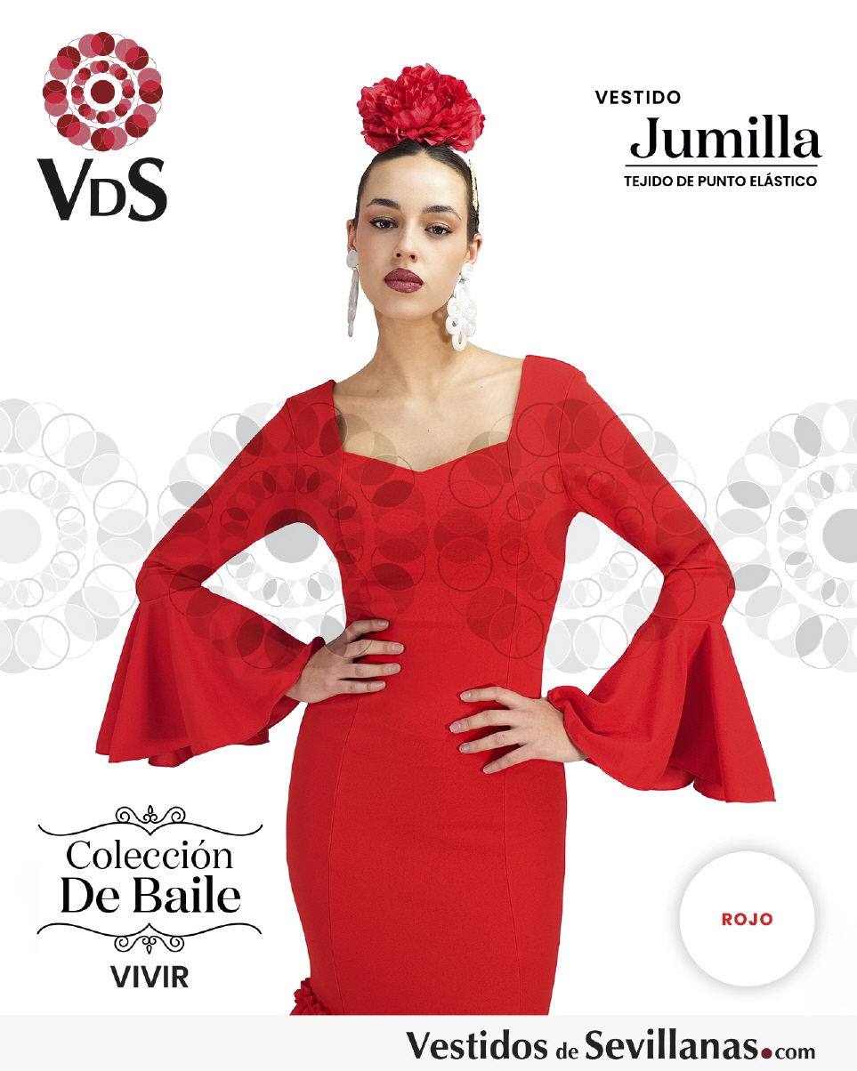 Traje JUMILLA para baile escote corazón con dos volantes en la manga, falda con tres volantes con garrucha.