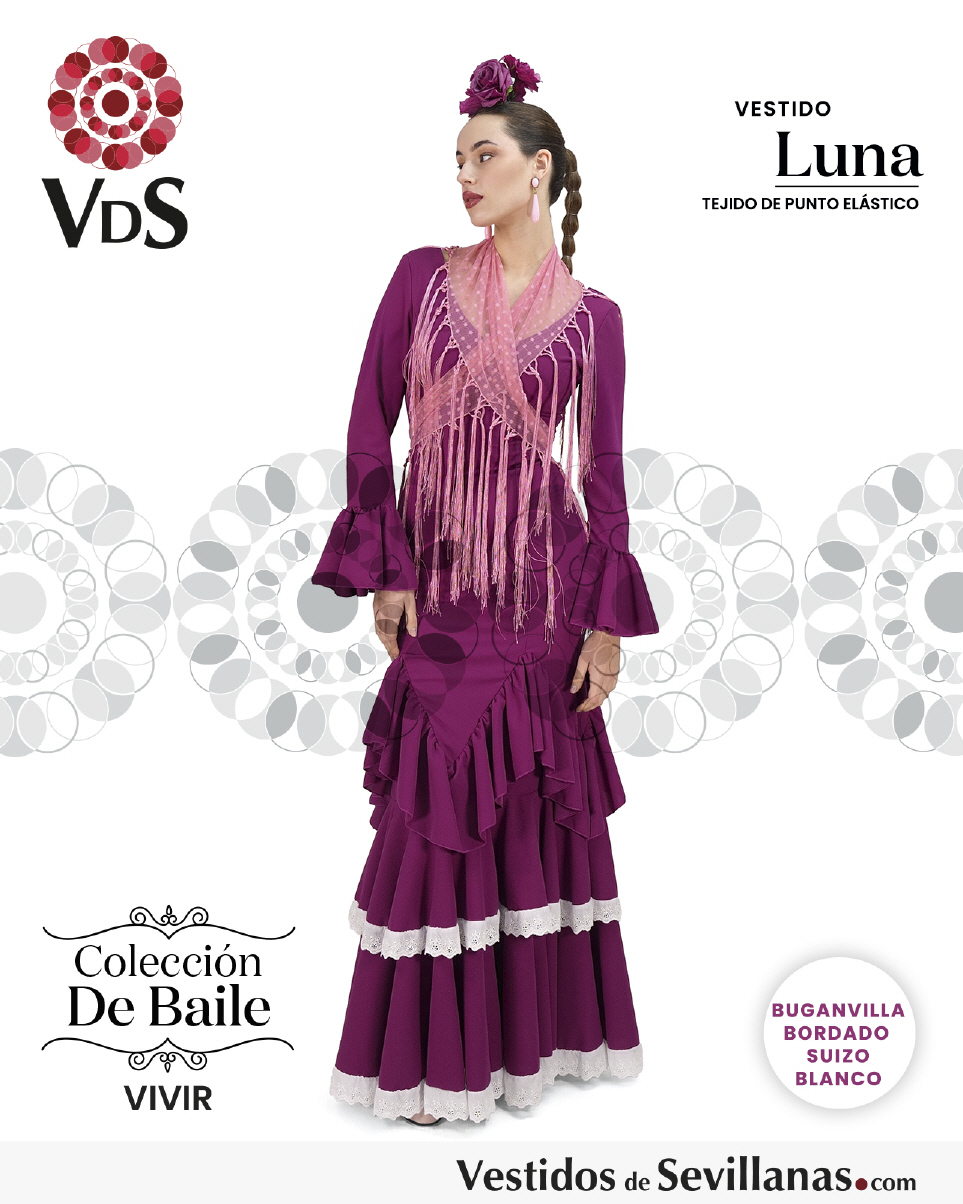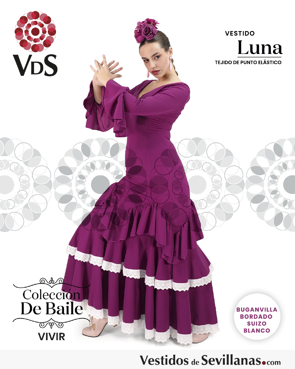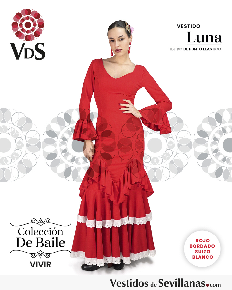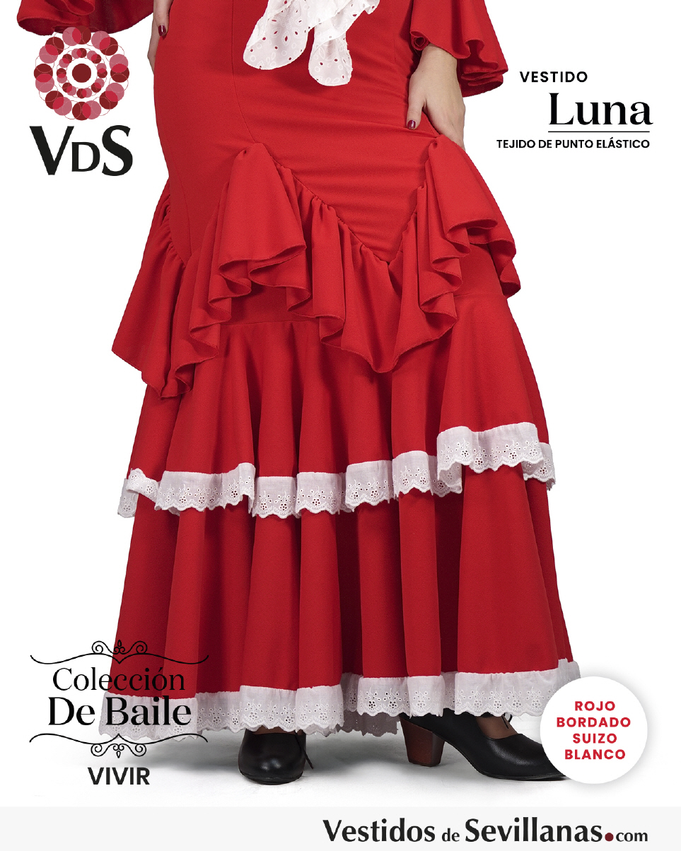 Traje LUNA para baile un volante en la manga, falda con mucho vuelo tres volantes.