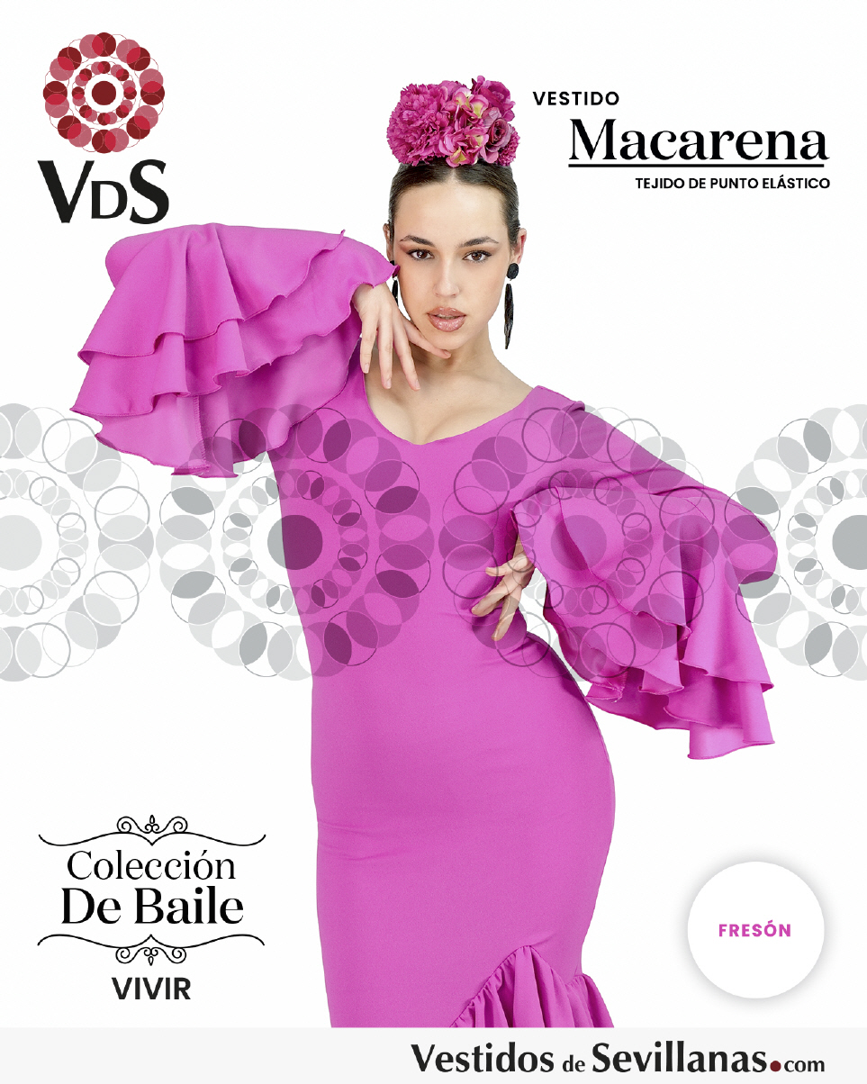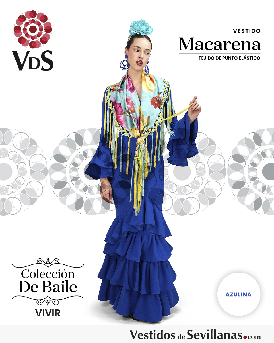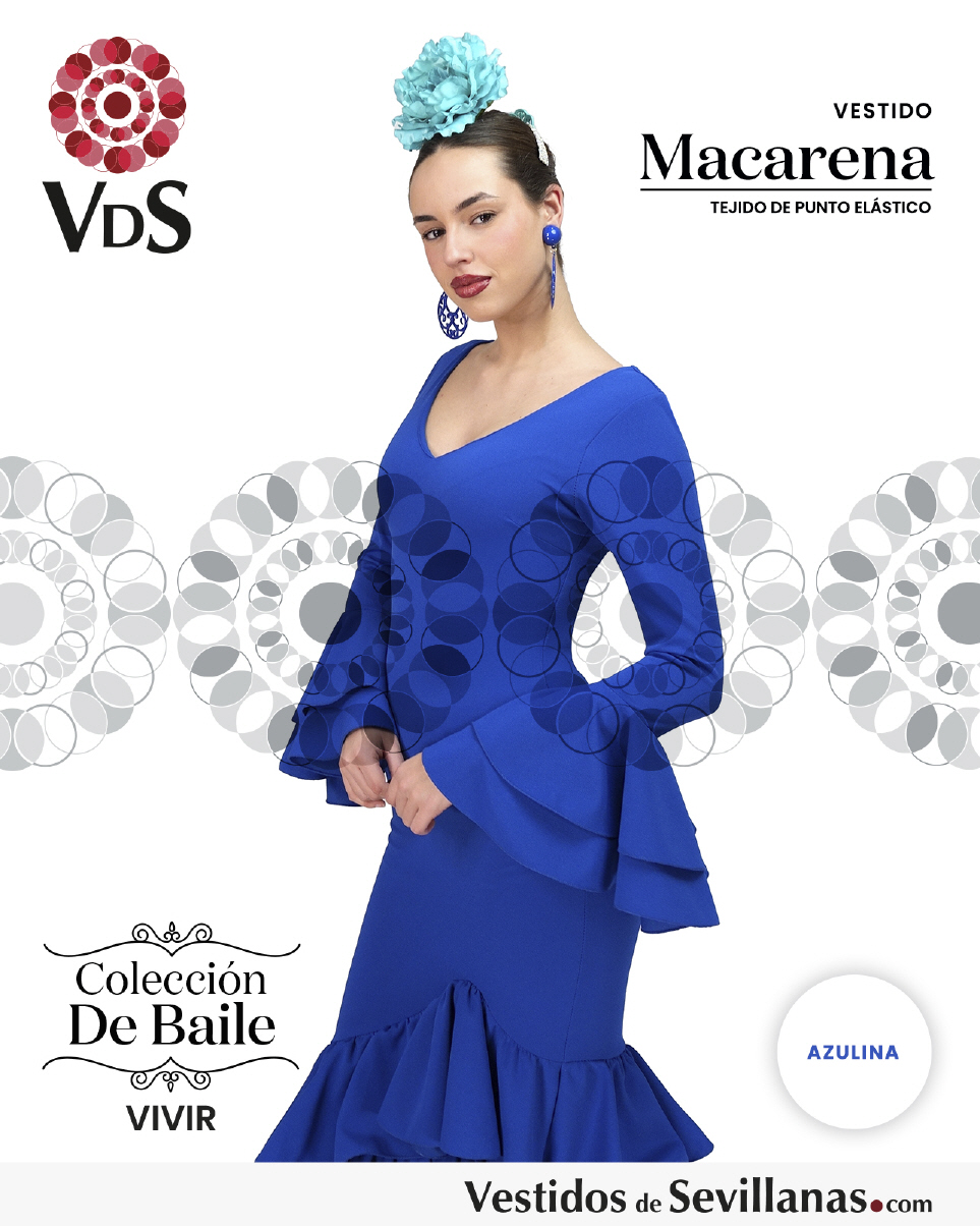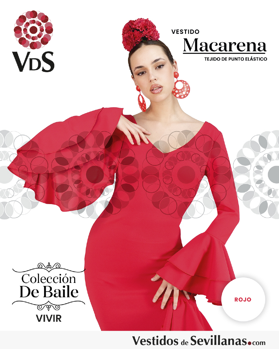 Traje MACARENA para baile ,dos volantes en la manga, falda con cuatro volantes.