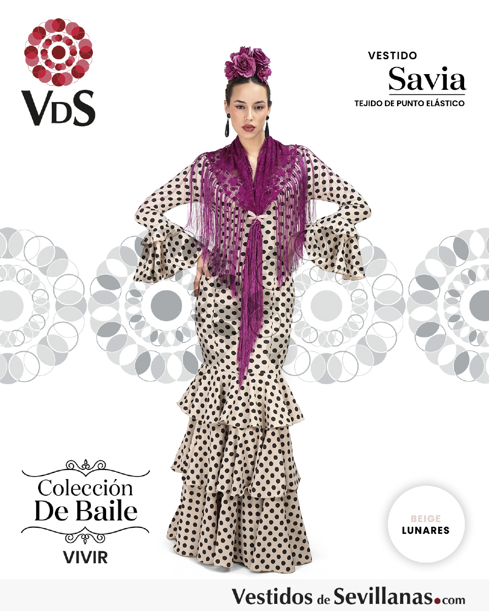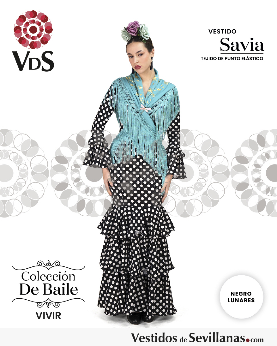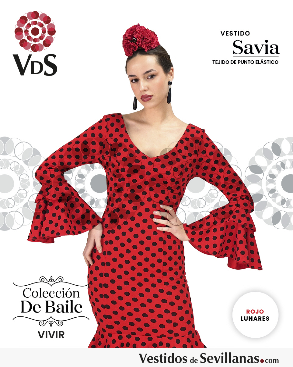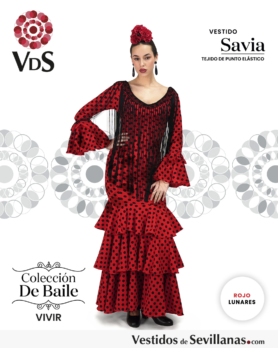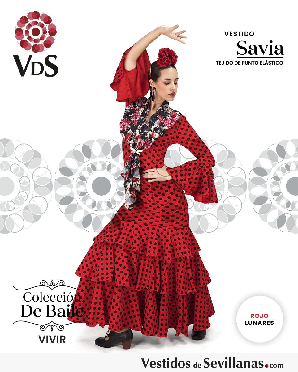 Traje SAVIA para baile un volante en la manga, falda con mucho vuelo tres volantes.